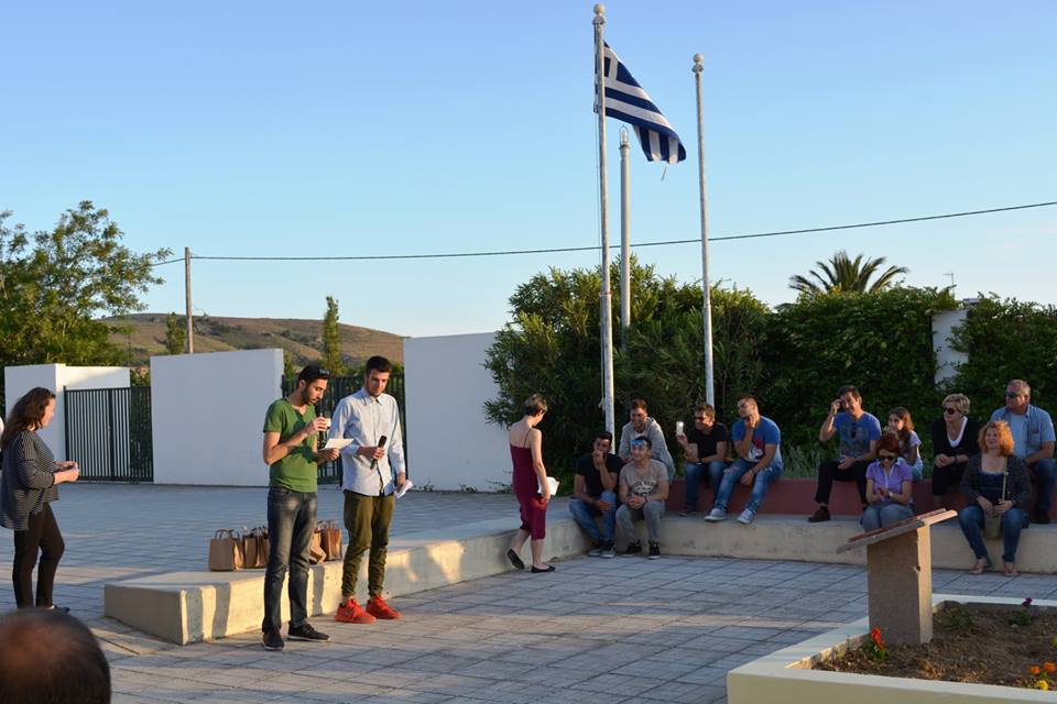 Η εκδήλωση έκλεισε με την ανάγνωση, από τους μαθητές Ραφαήλ Βλάττα Λαμπρινό και Κωνσταντίνο Τσίκοβα, λίγων στίχων από το ποίημα «Ειρήνη» του Γιάννη Ρίτσου, ενός ποιητή που έζησε και δημιούργησε εξόριστος στη Λήμνο, εξυμνώντας όσο λίγοι την ειρήνη και τη δικαιοσύνη για όλο τον κόσμο.