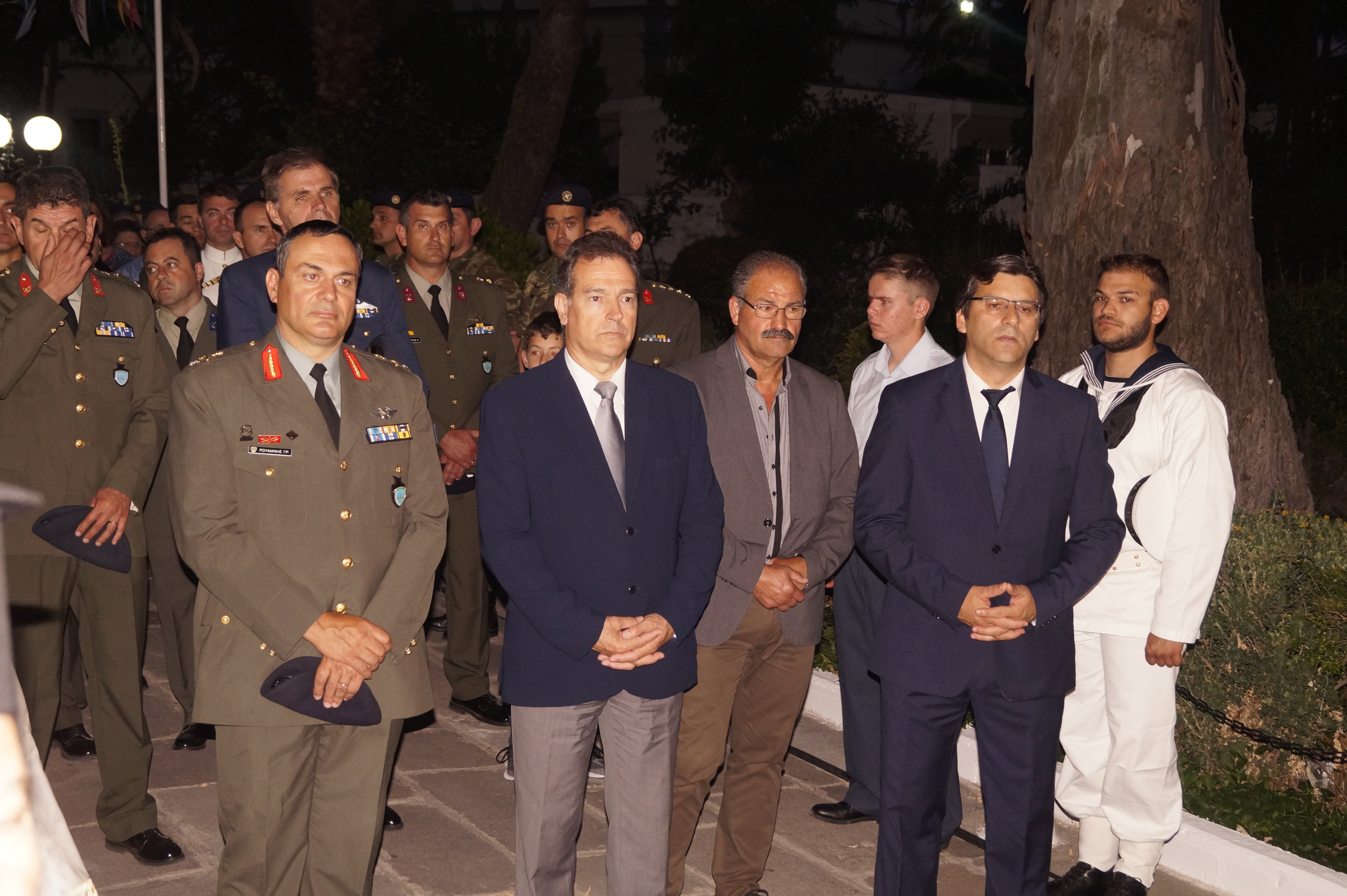 Ο στρατιωτικός διοικητής Ταξίαρχος κος Ρουμάνης Γρηγόριος , οι διοικητές των μονάδων ναυτικού, αεροπορίας, αστυνομίας , λιμενικού, πυροσβεστικής και αντιπροσωπίες.