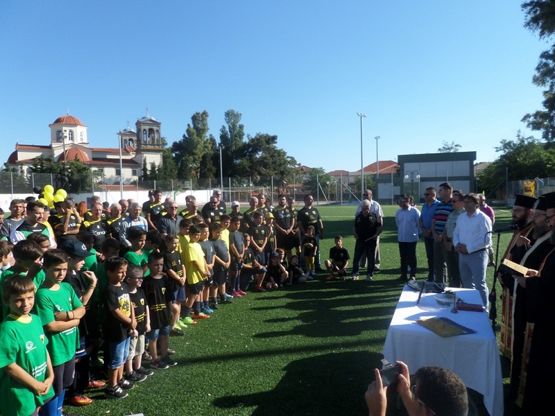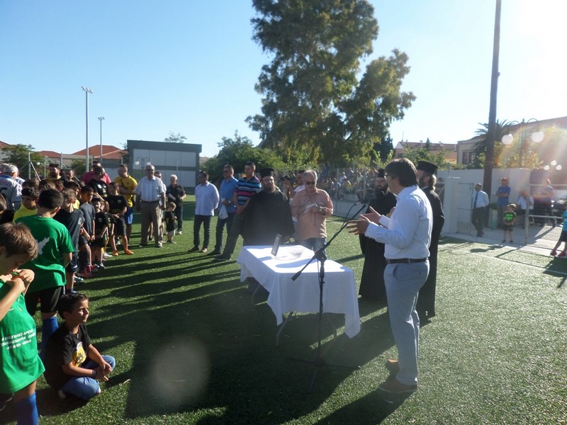 Τα εγκαίνια τελέστηκαν από τον Πρωτοπρεσβύτερο, πατέρα Αντώνιο Γιουρνάρα, ο οποίος μετέφερε το μήνυμα του Σεβασμιώτατου Μητροπολίτη κ. κ. Ιεροθέου, παρουσία του Δημάρχου Λήμνου κ. Δημήτρη Μαρινάκη, του στρατιωτικού διοικητή Λήμνου Ταξίαρχου Γρηγόριου Ρουμάνη, του Διοικητή της Πυροσβεστικής Υπηρεσίας Λήμνου, Παναγιώτη Μπιμπούδη, του Διοικητή του Α.Τ. Μύρινας Σωκράτη Κρομμυδέλλη, του Λιμενάρχη Μύρινας Γεώργιου Αρβανίτη, του πρώην Δημάρχου κ. Δημήτριου Βουλγαράκη, των Αντιδημάρχων κ. Νικόλαου Μοσχάκη, κ. Γεώργιου Σακαρίκου και κ. Ιωάννη Ποντίκα, του Προέδρου του ΟΕΠΑ Δήμου Λήμνου κ. Νικόλαου Μαρινάκη, των παλαίμαχων ποδοσφαιριστών της ΑΕΚ, του Προέδρου της Ένωσης Φίλων της ΑΕΚ Λήμνου κ. Απόστολου Παπάμπαλη, μελών της Ένωσης Φίλων της ΑΕΚ Λήμνου και πλήθους παρευρισκόμενων.