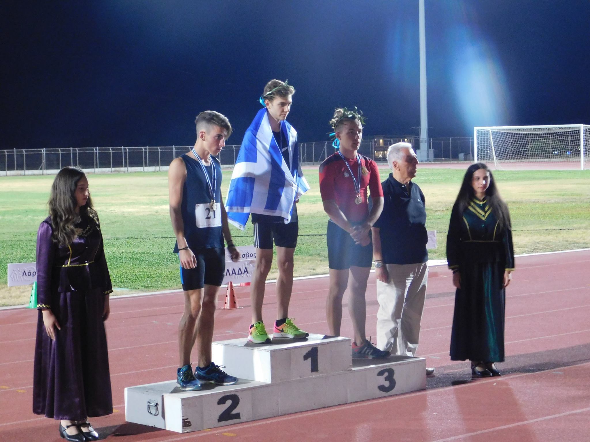 Το απόγευμα της ίδιας ημέρας, στο Δημοτικό Στάδιο Μύρινας, διεξήχθησαν τα αγωνίσματα του δρόμου 80 μ. και του άλματος σε μήκος και ακολούθησε η απονομή των επάθλων στους νικητές των αγώνων από τον Αντιπεριφερειάρχη Β. Αιγαίου κ. Κωνσταντίνο Αδαμίδη, τον Δήμαρχο Λήμνου κ. Δημήτρη Μαρινάκη, τον Πρόεδρο του ΟΕΠΑ Δήμου Λήμνου κ. Νίκο Μαρινάκη και τον Πρόεδρο του Παραρτήματος Λήμνου του Ελληνικού Ερυθρού Σταυρού και του Κέντρου Πρόληψης «Πολιόχνη», εμπνευστή του Αρχαίου Πεντάθλου, κ. Θεόδωρου Μπαβέα.