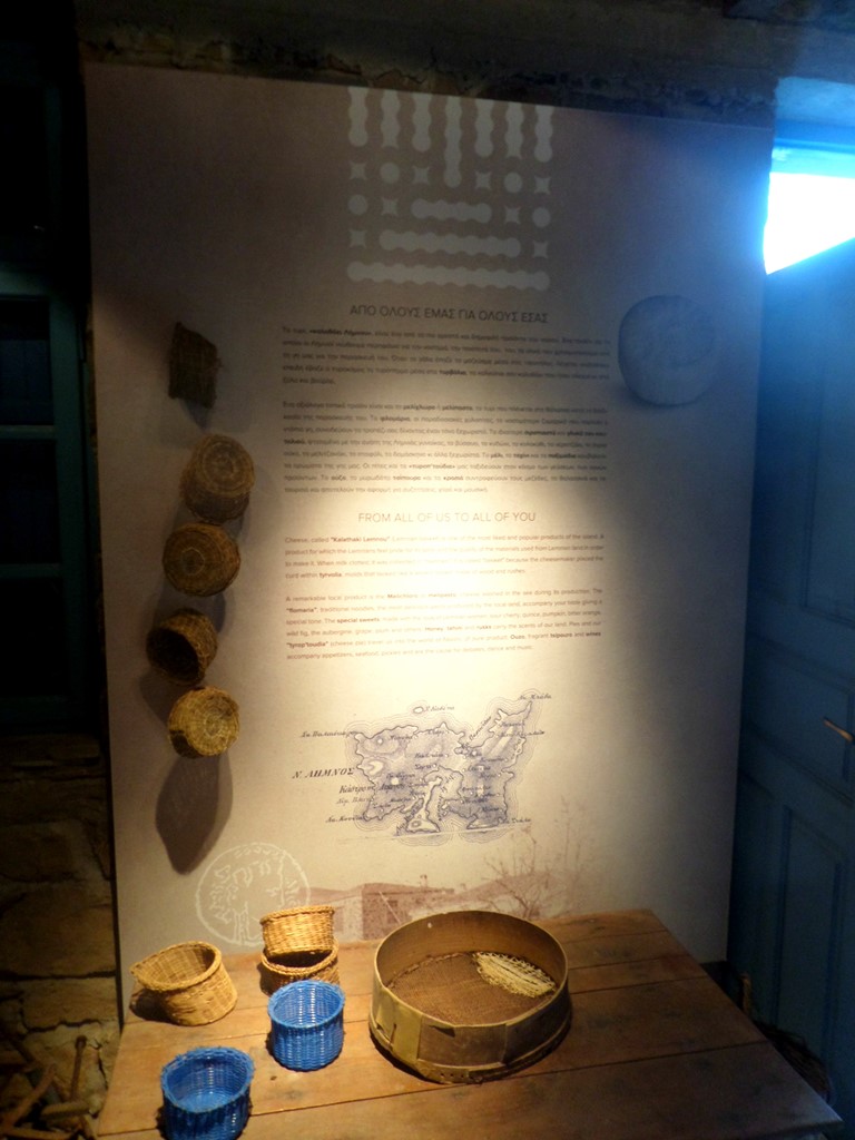 Στο Λαογραφικό Μουσείο μπορεί να δει κανείς κάθε δωμάτιο που υπήρχε στο παραδοσιακό λημνιό σπίτι, ενώ φιλοξενούνται θαυμαστά αντικείμενα εκείνης της εποχής. Σε χώρους όπως το δωμάτιο του αργαλειού, η νυφική κρεβατοκάμαρα, το μαγειρείο και ο χώρος συνεύρεσης, ζωντανεύουν σκηνές από την καθημερινότητα των κατοίκων της Λήμνου στα παλαιά χρόνια και προβάλλονται με τον πιο ευφάνταστο τρόπο τα ήθη και τα έθιμα των προγόνων μας.