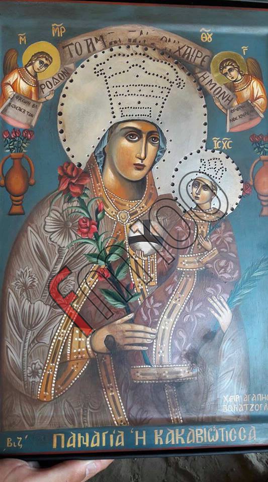 Μια ευχάριστη έκπληξη περίμενε όμως τους πιστούς, καθώς μια κυρία με καταγωγή από τη Λήμνο, εμφάνισε για πρώτη φορά μια νέα εικόνα της Παναγίας, φιλοτεχνημένη από τη ίδια.