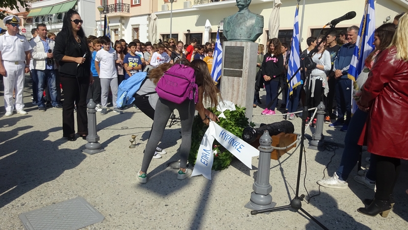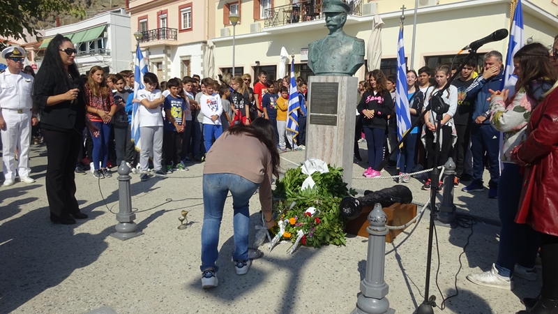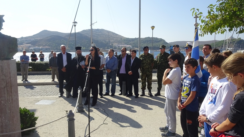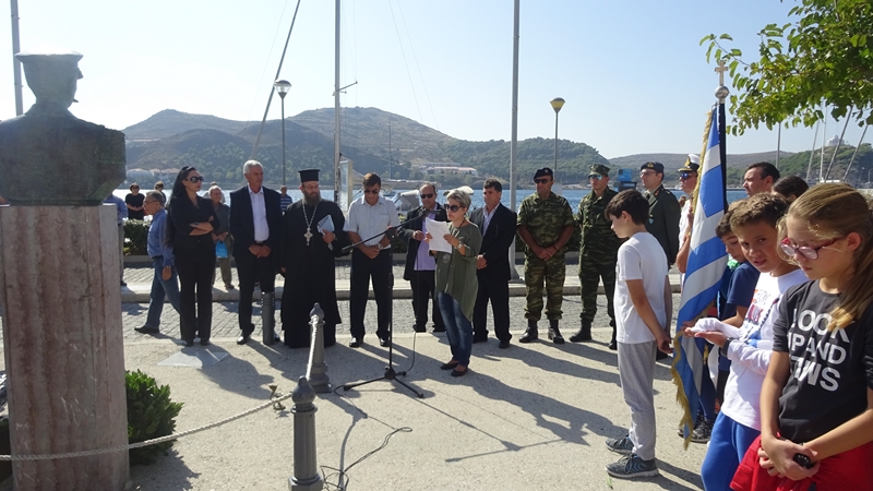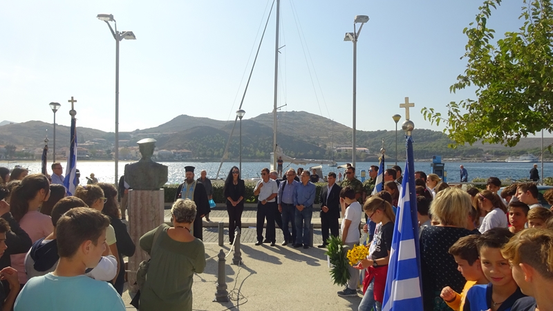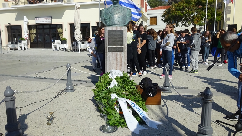 Αμέσως μετά την επιμνημόσυνη δέηση ακολούθησε η κατάθεση στεφανιών από αντιπροσωπείες μαθητών των σχολείων της Μύρινας, με την τελετή να ολοκληρώνεται με μια σύντομή αναφορά στη δράση του Παύλου Κουντουριώτη.