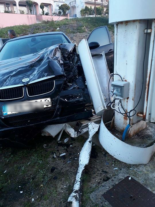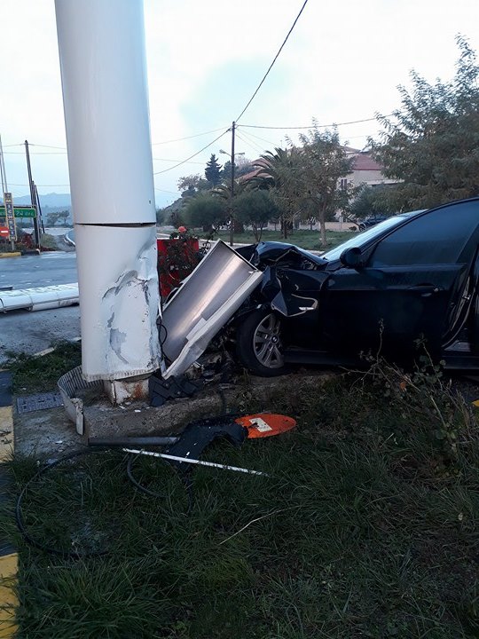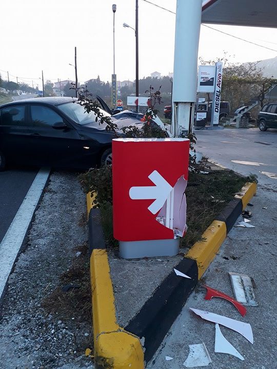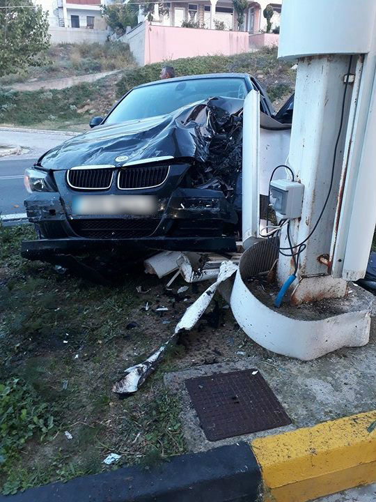 Με βάση τις πρώτες πληροφορίες ο οδηγός ΙΧ αυτοκίνητο με κατεύθυνση τη Μύρινα, έχασε τον έλεγχο με αποτέλεσμα να προσκρούσει στον κόμβο και να σταματήσει στη μεταλλική μεγάλη βάση της πινακίδας του πρατηρίου καυσίμων.