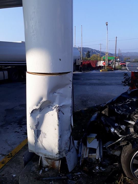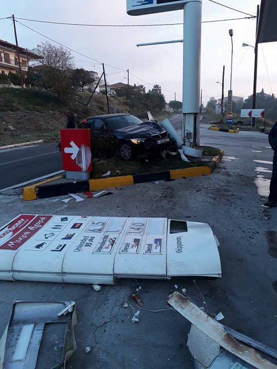 Από την πρόσκρουση ευτυχώς δεν τραυματίστηκαν οι 3 επιβαίνοντες του ΙΧ, προκλήθηκαν όμως υλικές ζημιές τόσο στο όχημα όσο και στο πρατήριο καυσίμων.