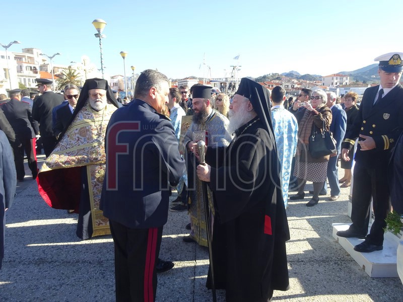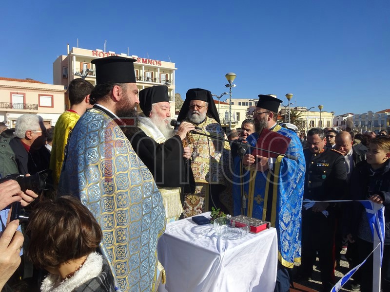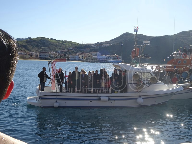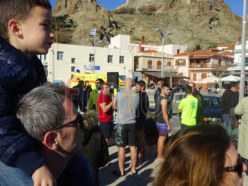 Η τελετή αγιασμού των υδάτων και κατάδυσης του Τιμίου Σταυρού πραγματοποιήθηκε με σύμμαχο τον καιρό δίνοντας έτσι την ευκαιρία στους κατοίκους του νησιού να παρευρεθούν στο λιμάνι της πρωτεύουσας για τη μεγάλη γιορτή της Χριστιανοσύνης.