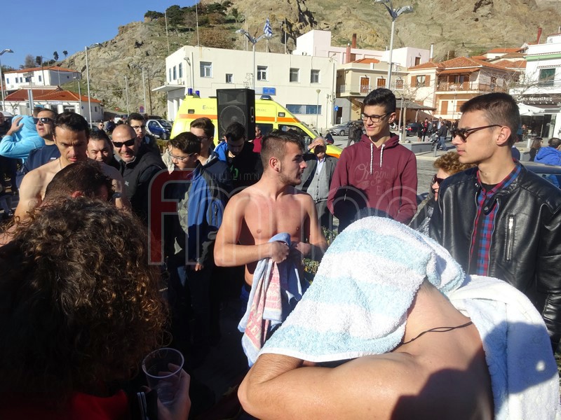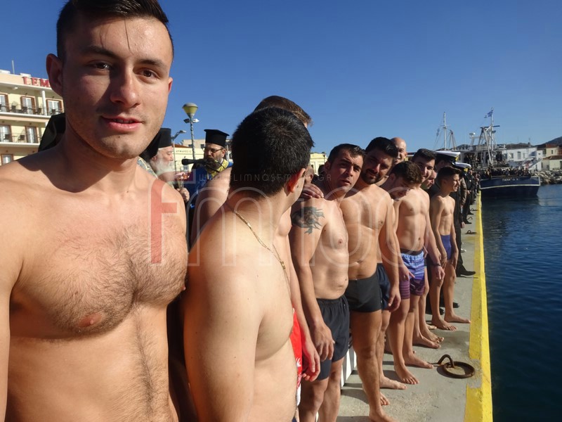 Τον Τίμιο Σταυρό έπιασε ο Χρυσόστομος Μαλακός ανάμεσα στους δώδεκα άνδρες όλων των ηλικιών που βούτηξαν στα παγωμένα νερά. Ο Χρυσόστομος κατάγεται από την Αλεξανδρούπολη και υπηρετεί ως στρατιωτικός στη Λήμνο.