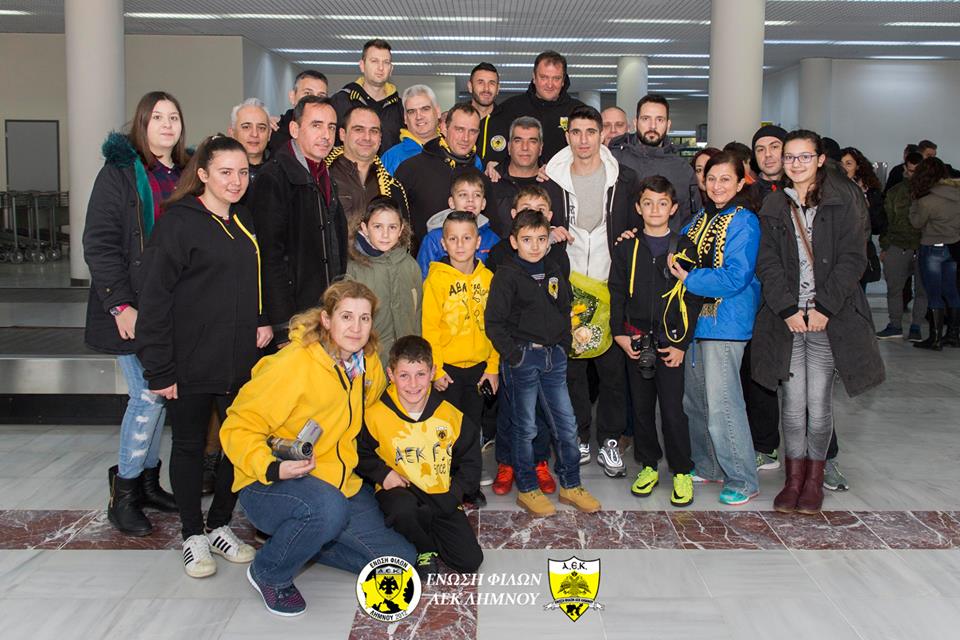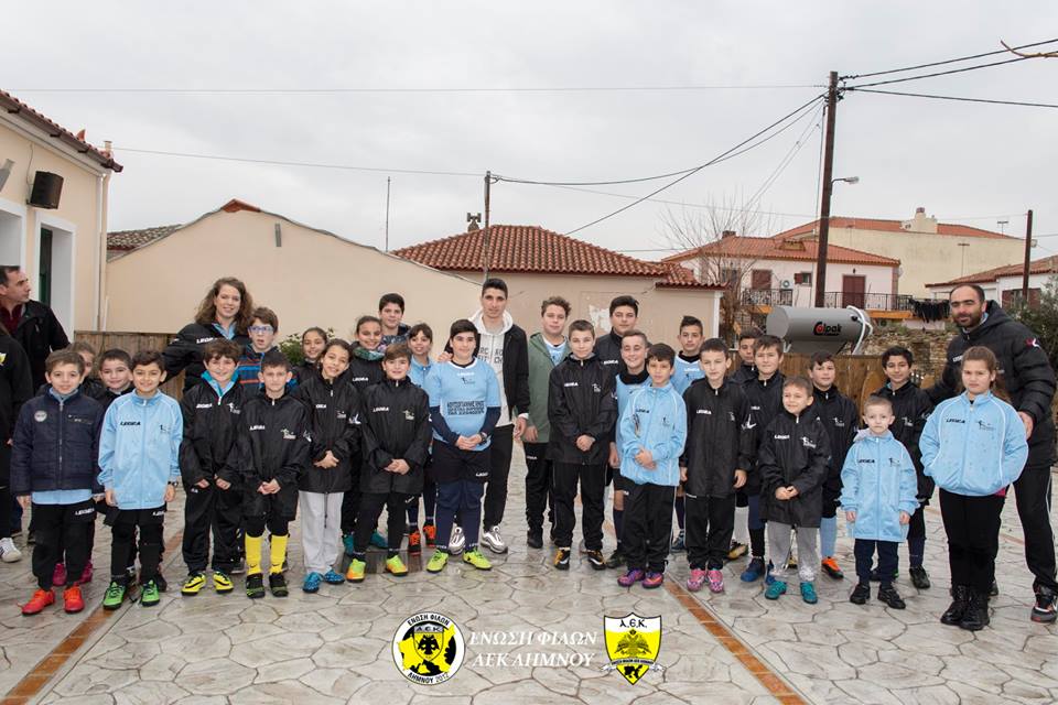 Ο αρχηγός που θα τιμηθεί στον αποψινό χορό της Ένωσης Φίλων ΑΕΚ Λήμνου, μετά την άφιξή του στο νησί, επισκέφθηκε το club των κιτρινόμαυρων, καθώς και την ακαδημία ποδοσφαίρου, όπου συνομίλησε με τους φίλους του δικέφαλου και υπέγραψε αυτόγραφα.