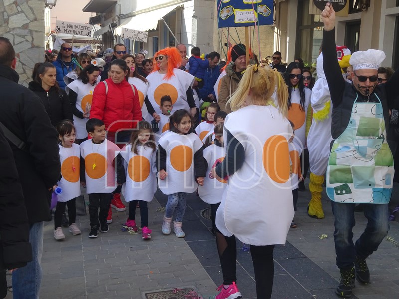 Φυσικά, πρωταγωνιστές ήταν οι έντεκα ομάδες που πλαισίωσαν την παρέλαση με μασκαράδες κάθε ηλικίας να κινούνται σε ξέφρενους ρυθμούς στέλνοντας μηνύματα αισιοδοξίας, ζωντάνιας και χαράς.