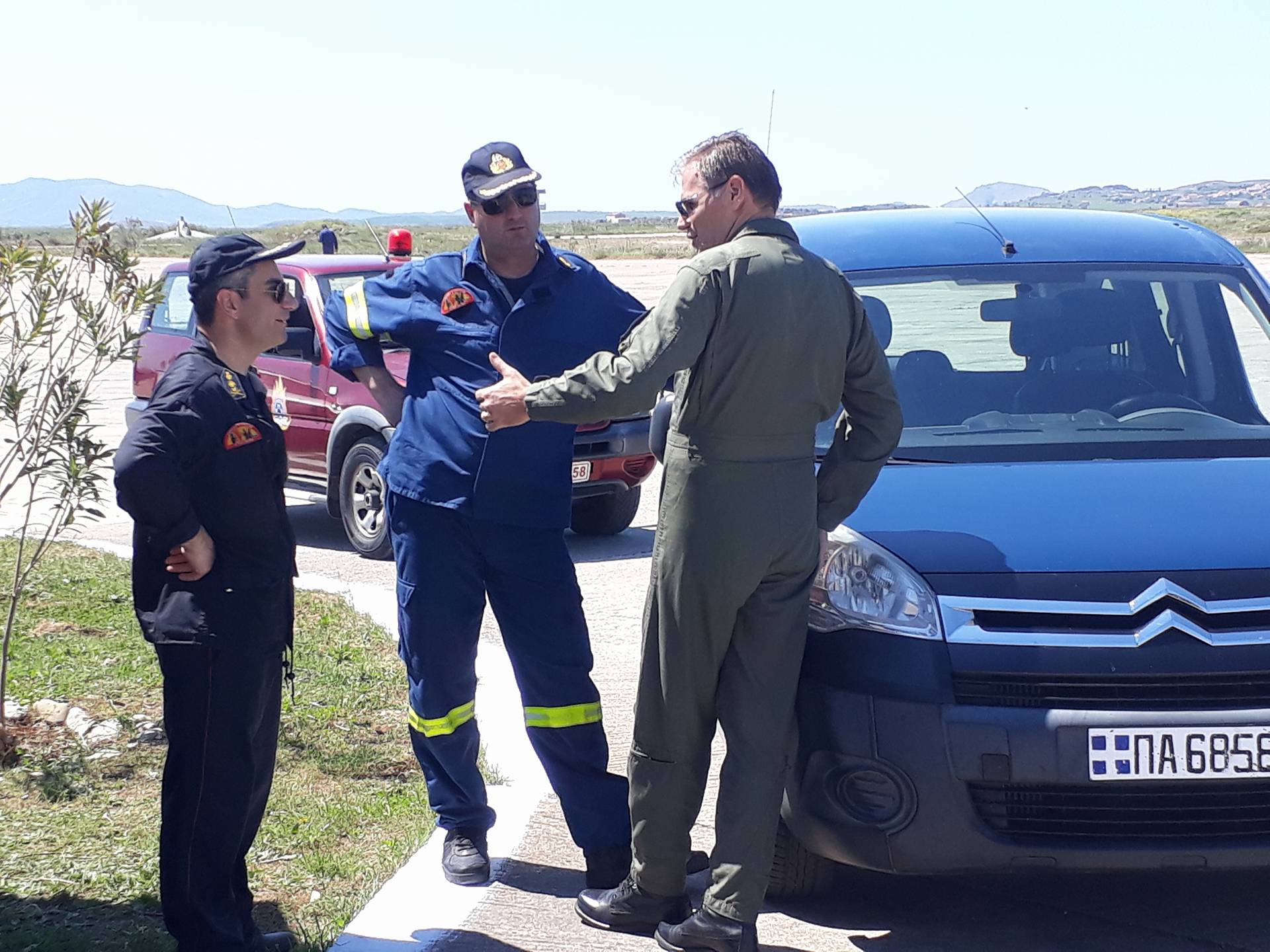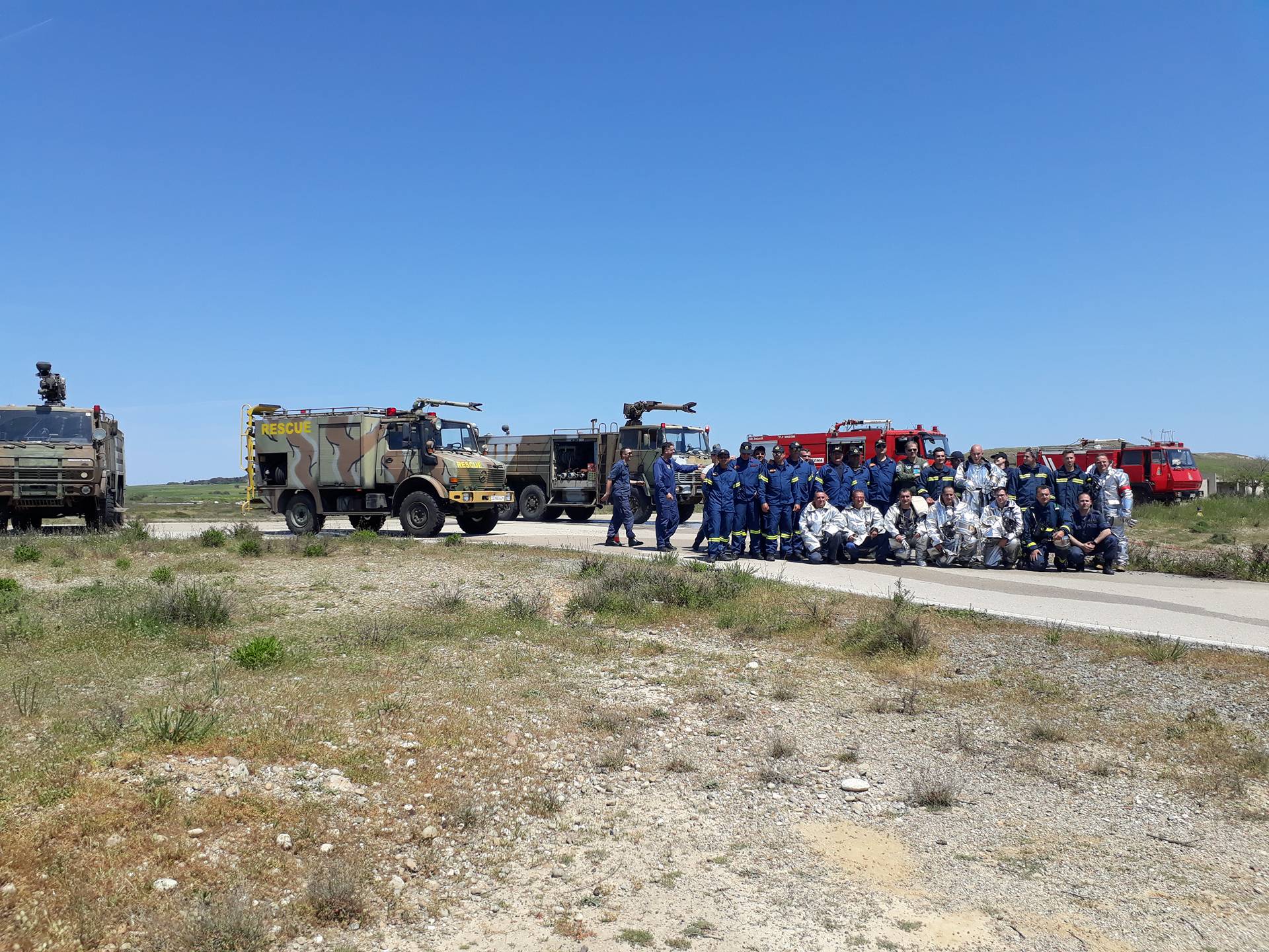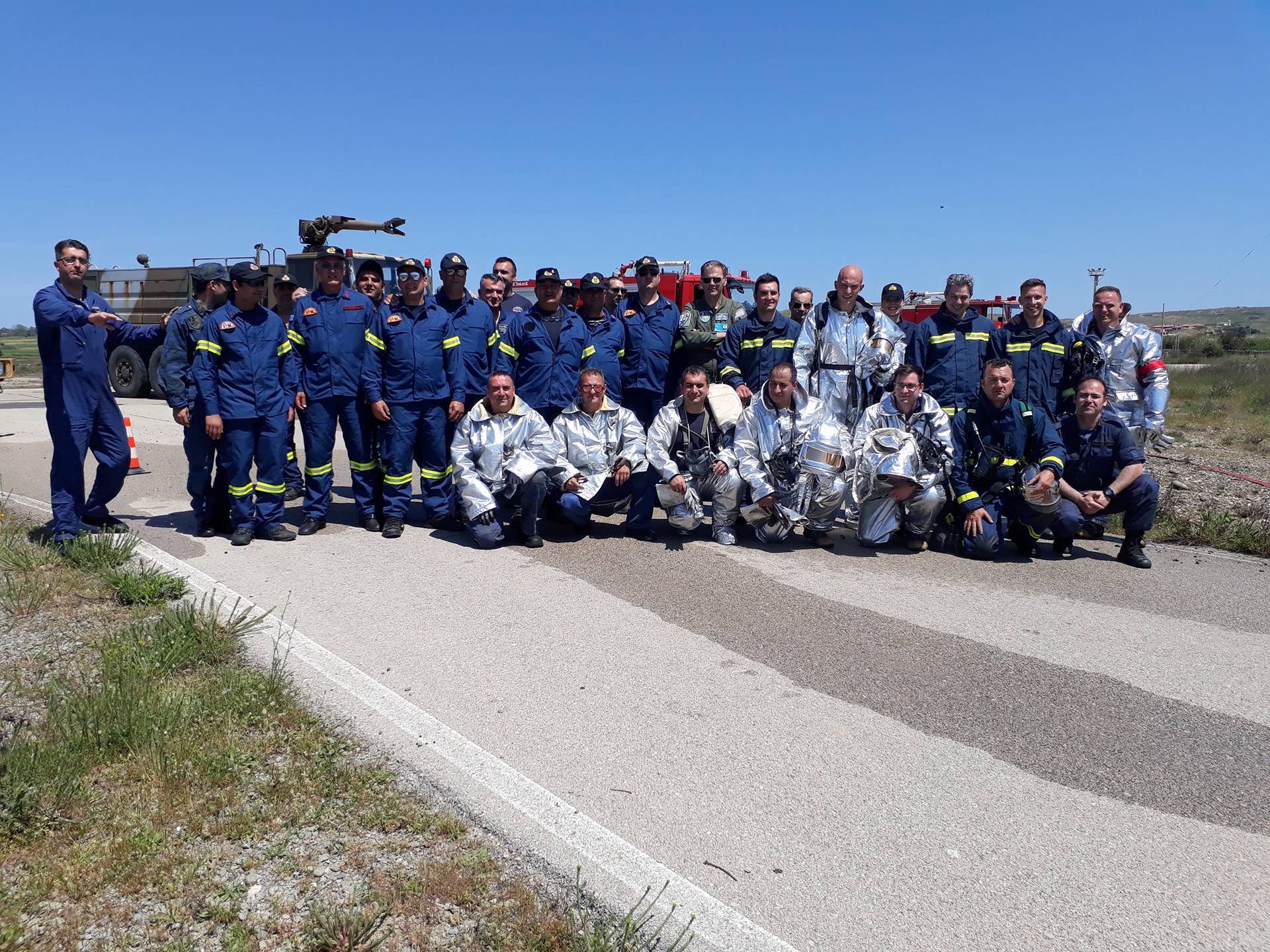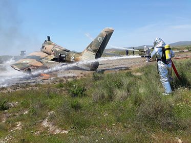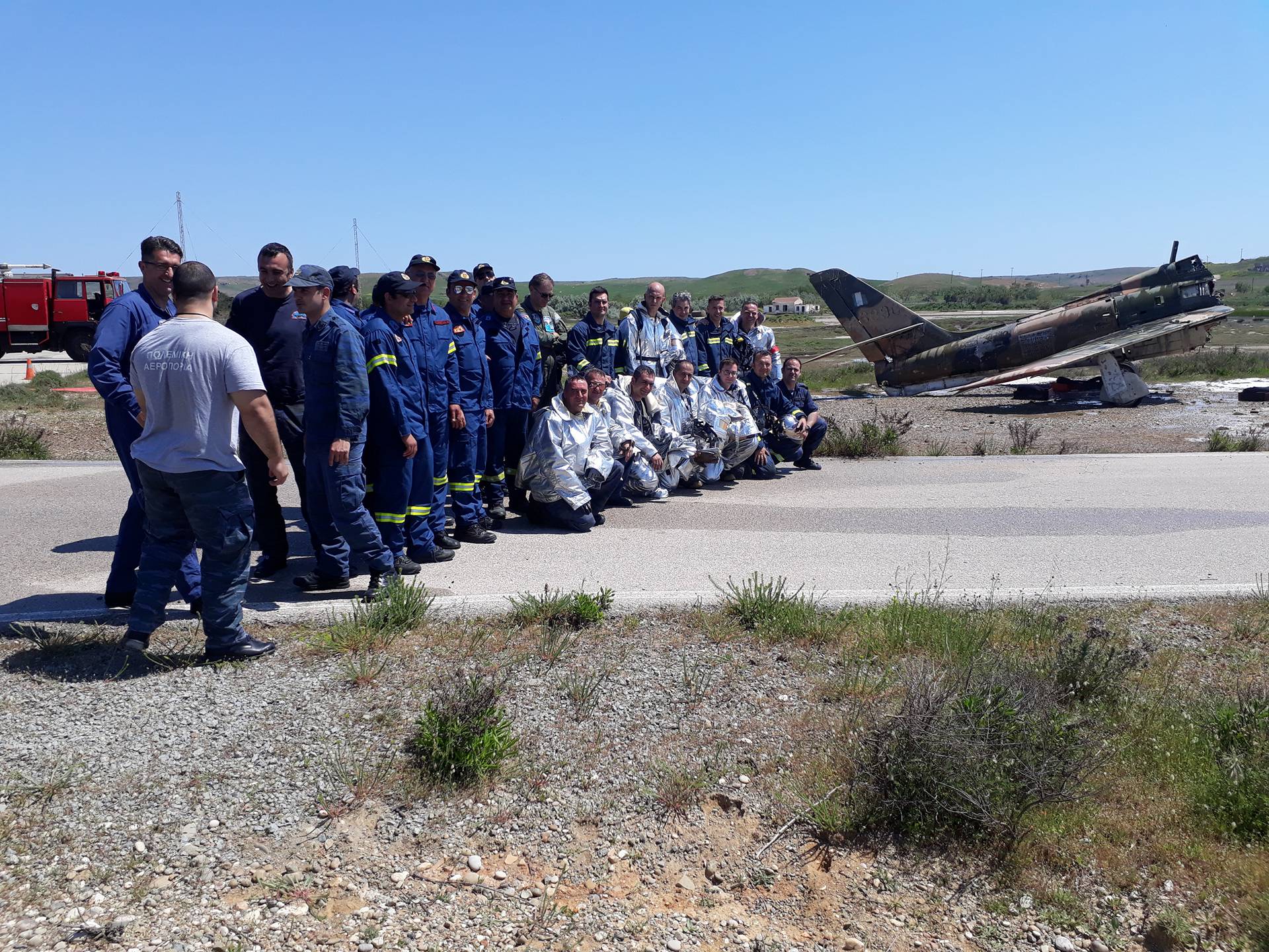Όπως θα δείτε τις φωτογραφίες που ακολουθούν και με βάση το σενάριο, η Υπηρεσία κλήθηκε στις εγκαταστάσεις της Πολεμικής Αεροπορίας, προκειμένου να σβήσει φωτιά από αεροσκάφος.