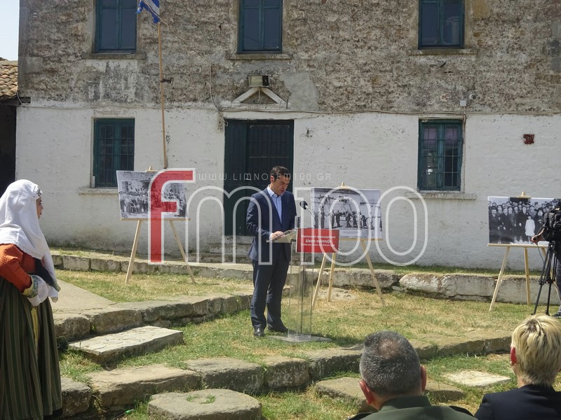 Ο Πρωθυπουργός άνοιξε την ομιλία του λέγοντας: «Είναι μεγάλη χαρά μου, να βρίσκομαι σήμερα εδώ στη Λήμνο και μάλιστα, σε έναν ιστορικό τόπο της Λήμνου. Αλλά, είναι μεγάλη η χαρά μου να βρίσκομαι σε αυτό το νησί, ένα νησί που αποτελεί μία από τις πιο όμορφες, αλλά και πιο ιστορικές γωνιές της πατρίδας μας. Για την ομορφιά της Λήμνου, δεν χρειάζεται να πω πολλά, διότι είναι εμφανής, πιστεύω γνωστή στο πανελλήνιο. Και όσοι δεν το γνωρίζουν πρέπει να σπεύσουν να το μάθουν και να το μάθουν από κοντά. Ωστόσο, επιτρέψτε μου να μιλήσω λίγο για την ιστορία αυτού του τόπου. Για την ιστορία που αποτελεί –αν θέλετε- ένα ξεχωριστό φορτίο στο διάβα των ετών, στο διάβα των χρόνων. Και θα έλεγα από κάθε άποψη και σε πολλές διαφορετικές περιστάσεις. Διότι πρόκειται για έναν τόπο ζωντανό, δημιουργικό, από τη νεολιθική εποχή. Αυτό άλλωστε μαρτυρά τόσο η Μύρινα όσο και η Πολιόχνη, την περίοδο των Πελασγών, φθάνοντας όμως και μέχρι τη σύγχρονη εποχή. Λίγοι είναι αυτοί που ενδεχομένως θα γνωρίζουν ότι σ’ αυτόν εδώ τον τόπο έγινε ένα αποφασιστικό βήμα για τη λήξη του Πρώτου Παγκοσμίου Πολέμου. Το 1918, στον Μούδρο υπογράφηκε η ανακωχή των δυνάμεων της Αντάντ με την τότε Οθωμανική Αυτοκρατορία».