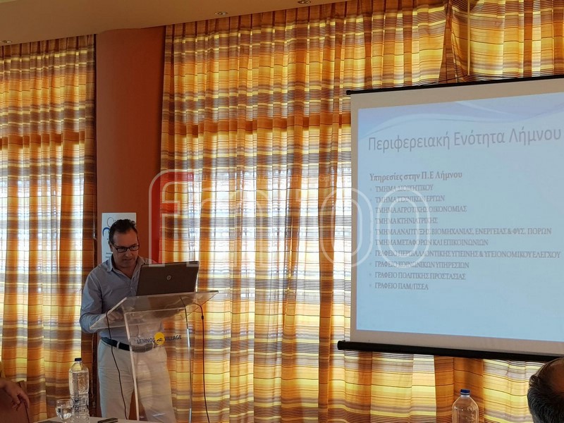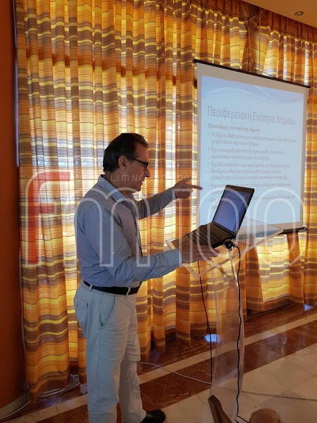 Κατά την πρώτη συνάντηση που έλαβε χώρα χθες στην αίθουσα συνεδριάσεων του Lemnos Village Resort Hotel πραγματοποιήθηκε παρουσίαση της Περιφερειακής Ενότητας Λήμνου από τον Έπαρχο Λήμνου κ. Ευάγγελο Γιαρμαδούρο. Οι σύνεδροι χαιρέτισαν το έργο του Επαρχείου ενώ ο κ. Γιαρμαδούρος μνημόνευσε την Περιφερειάρχη Βορείου Αιγαίου για την βοήθεια που παράσχει σε αυτό. «Ελπίζουμε να συνεχιστεί αυτό, όχι μόνο από την κ. Καλογήρου αλλά και από την πολιτεία, η οποία πρέπει να καταλάβει τι γίνεται», κατέληξε ο Έπαρχος Λήμνου.