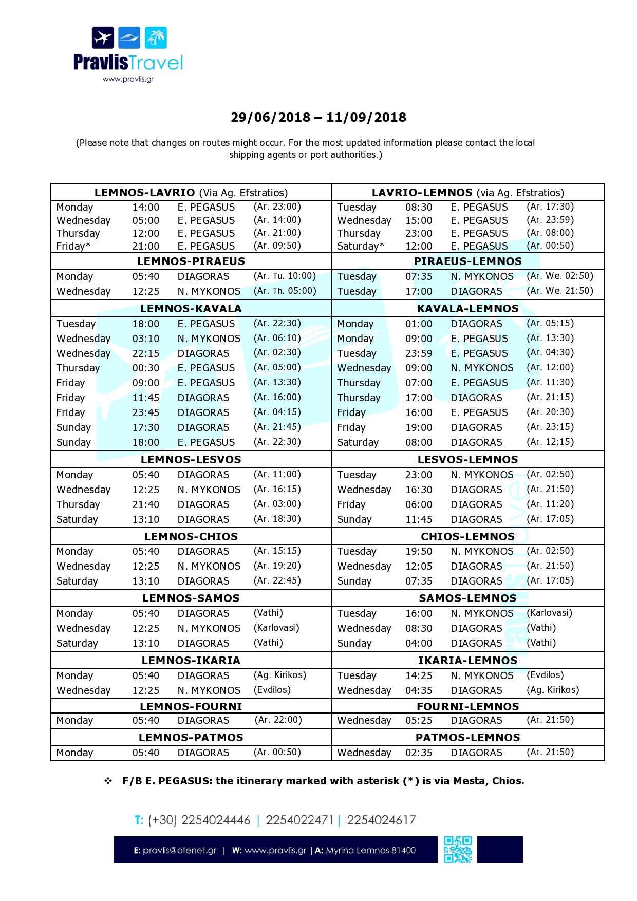 Δείτε τα δρομολόγια όπως αυτά ανακοινώθηκαν από το ταξιδιωτικό πρακτορείο «Pravlis Travel»