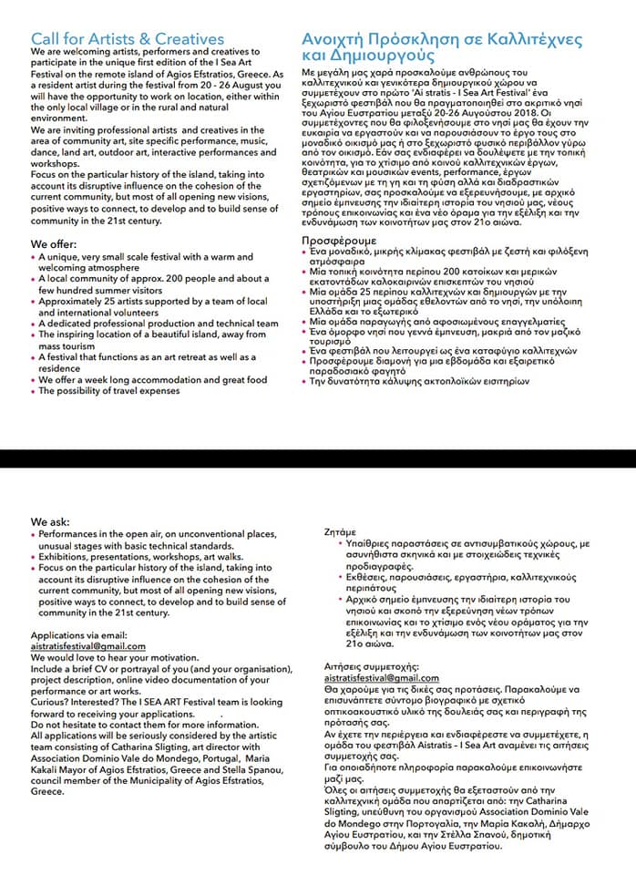 Το φεστιβάλ «Ai Stratis I Sea Art Festival», πραγματοποιείται για πρώτη φορά στο γειτονικό νησί και η Δήμαρχος Μαρία Κακαλή, μίλησε σήμερα στην πρωινή εκπομπή του FM 100 «Έχουμε Θέμα», για τη διοργάνωση αυτή.