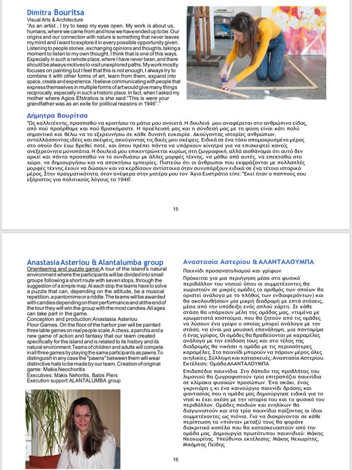 Σε... φεστιβαλικούς ρυθμούς κινείται από τη Δευτέρα το νησί του Αγίου Ευστρατίου, φιλοξενώντας 54 καλλιτέχνες, που έφτασαν στο νησί από διάφορες χώρες του πλανήτη.