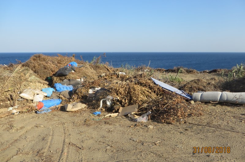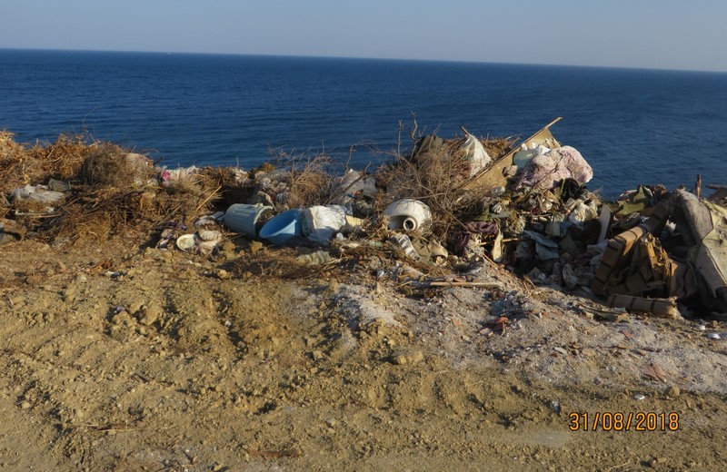 "Δεν είναι δυνατόν!", σκέφτηκα. Κι όμως... Και πήγα να δω από κοντά... και πήγα και το φωτογράφισα. Αυτές οι εικόνες ντροπής πάνω απ τη θάλασσα, 500 μέτρα πίσω απ τον Αγ. Σώζο, στη θέση "Κομμένο Βνό".