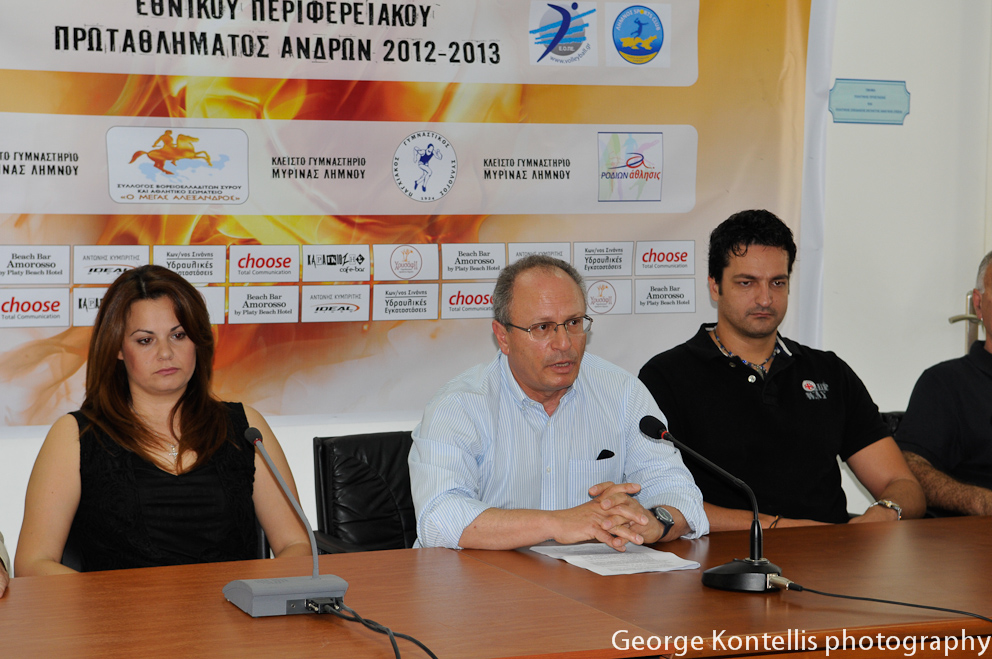 Δήμαρχος Λήμνου Αντώνης Χατζηδιαμαντής : «Σας καλωσορίζω σε αυτή την πολύ σημαντική διοργάνωση για τη Λήμνο. Δεν είναι μικρό γεγονός, εν μέσω κρίσης να κάνεις τέτοια επιχειρήματα. Με συγκίνηση θέλω να πω ότι όταν πριν από δύο χρόνια με επισκέφτηκε στο γραφείο μου ο Νίκος Σαμαράς και μου ανέλυσε το όραμά τουγια την ανάπτυξη του αθλητισμού και του βόλεϊ στο νησί. Τότε, δεν πίστευα ότι το όνειρό του θα είχε μεγάλη τύχη. Προσπαθήσαμε όμως να βρούμε λύσεις στα όποια προβλήματα και η αρχή ήταν δύσκολη. Όμως βρέθηκε ο βηματισμός που οδηγούσε μακριά. Ακουμπήσαμε το όραμά του και σήμερα στην υλοποίησή του, λείπει ο πιο βασικός συντελεστής, ο Νίκος. Συνεχίζουμε με πίστη στα ιδανικά και στο όραμά του. Στις συνθήκες οικονομικής κρίσης, η τοπική αυτοδιοίκηση έχει πολύ μικρά περιθώρια επένδυσης στον αθλητισμό.