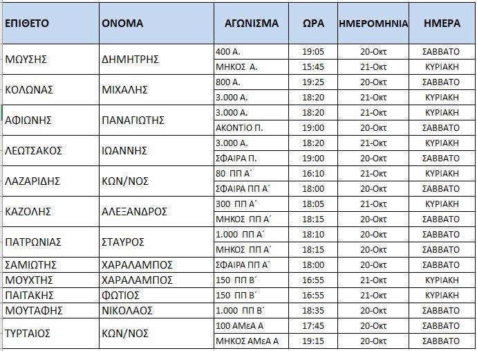 Με εικοσιπέντε αθλητές-τριες και δύο αθλητές-τριες του τμήματος των ΑμεΑ αναχωρεί η ομάδα μας σήμερα Παρασκευή βράδυ για Αθήνα και αύριο Σάββατο πρωί από Αθήνα για Κω προκειμένω να μας εκπροσωπήσει στους 30ους Αιγαιοπελαγίτικους Αγώνες Στίβου που θα διεξαχθούν στην Κω το Σάββατο 20/10 και την Κυριακή 21/10.Την αποστολή θα συνοδεύσουν οι Κύριοι: Τράνταλος Δήμος (έφορος στίβου), Καρύδης Νίκος (προπονητής), Νικολακάκος Δημήτρης (συνοδός) και οι Κυρίες: Κατεβαινίδου Γεσθημανή (υπεύθυνη τμήματος ΑμεΑ), Κραβαρίτου Φιλία (συνοδός), Κουτσομπίνα Μαρία (συνοδός), Νόβακ Μπάρμπαρα (συνοδός).