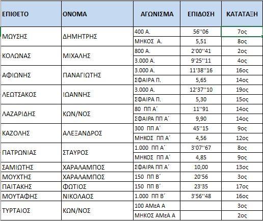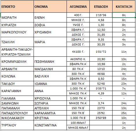 Οι επιδώσεις των αθλητριών-των μας αναλυτικότερα:Στους παρακάτω πίνακες