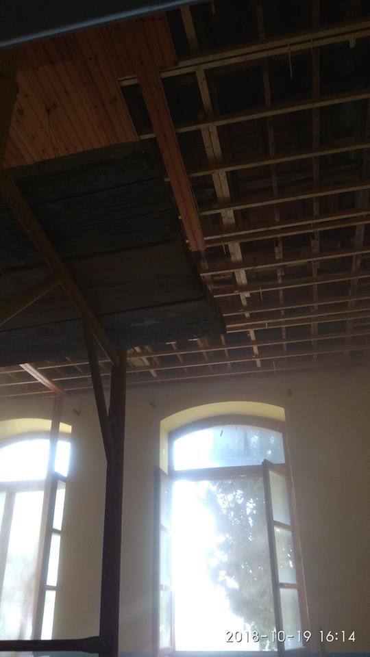 σας ενημερώνουμε ότι στις 28/09/2018 και ημέρα Παρασκευή άρχισαν να πέφτουν χώματα από το ταβάνι της Β΄ τάξης. Η δασκάλα της τάξης ενημέρωσε τον Δ/ντή του σχολείου ο οποίος εκκένωσε άμεσα την αίθουσα, διότι κάποια ξύλα από το ταβάνι είχαν ανοίξει και μπορούσαμε να διακρίνουμε μπάζα στο εσωτερικό της στέγης.