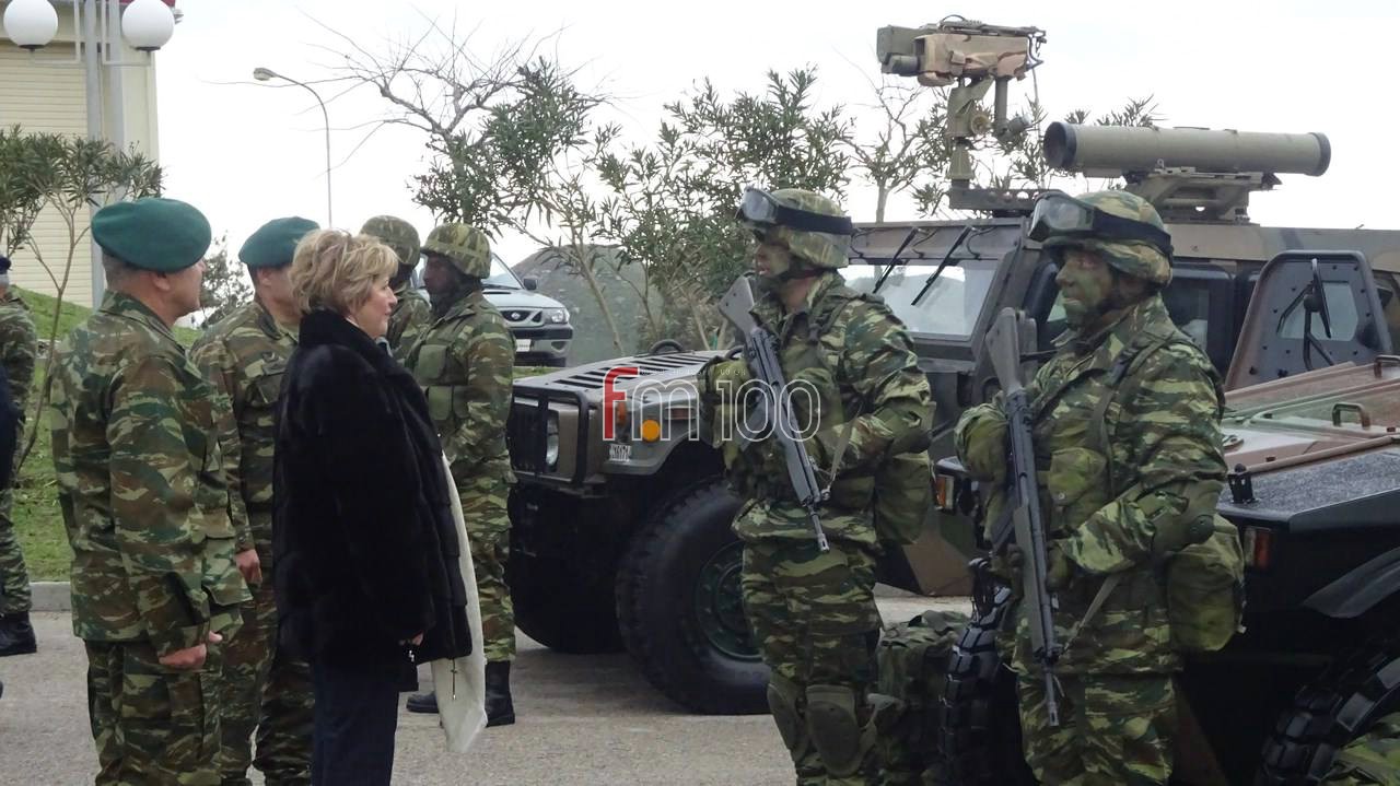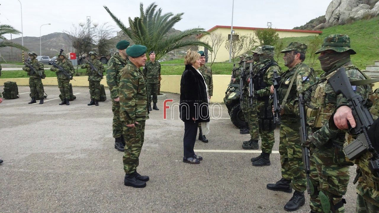 Η κ. Κόλλια-Τσαρουχά έφτασε στο νησί στις 12 το μεσημέρι και επισκέφθηκε την 130 Σμηναρχία Μάχης, την κανονιοφόρο «Μαχητής» στο Λιμάνι της Μύρινας και στη συνέχεια την 88η Στρατιωτική Διοίκηση «ΛΗΜΝΟΣ».
