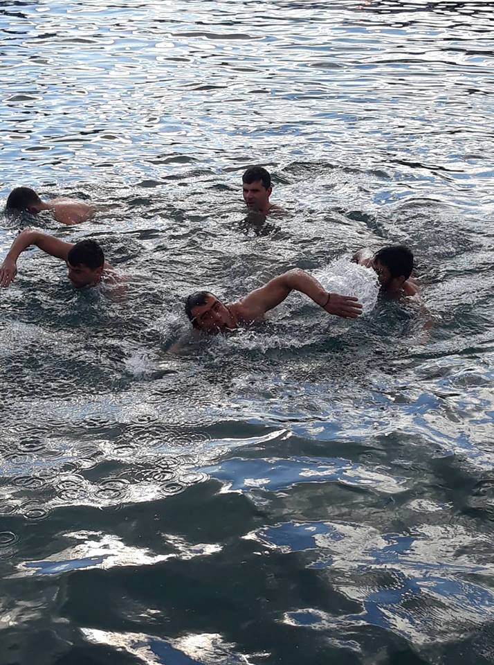 Πέντε ήταν οι θαραλλέοι που αψήφησαν το κρύο και τα παγωμένα νερά και βούτηξαν να πιάσουν τον Τίμιο Σταυρό, με τον Πάρη Γλίντζο να είναι ο πιο γρήγορος.