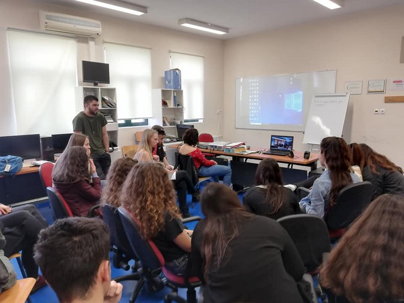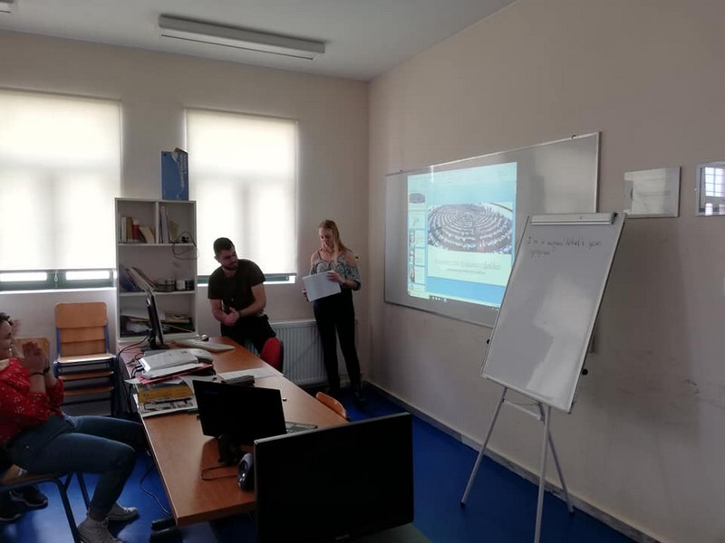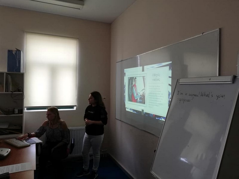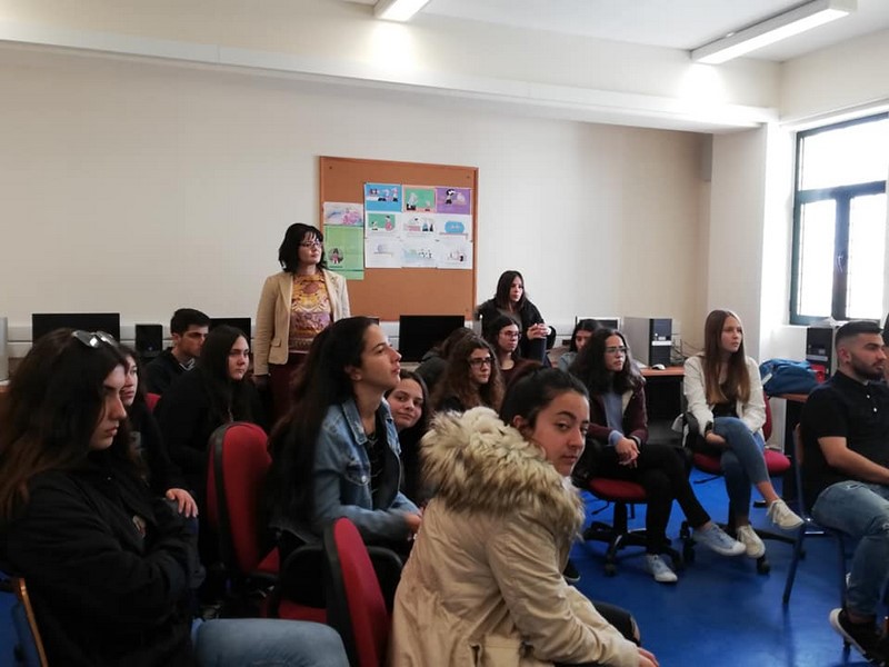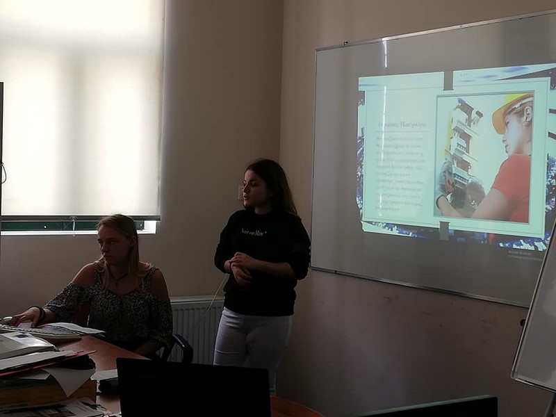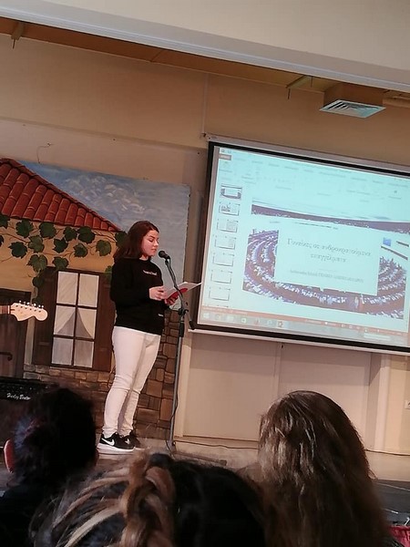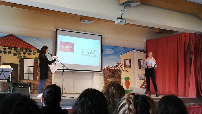 Λίγο νωρίτερα, μαθητές και εκπαιδευτικοί του Γενικού Λυκείου Μούδρου, συνδέθηκαν μέσω Skype σε τηλεδιάσκεψη με τους αντίστοιχους μαθητές και εκπαιδευτικούς, σχολικούς πρέσβεις του Ευρωπαϊκού Κοινοβουλίου, του 1ου Γενικού Λυκείου Χαλκίδας. Συζήτησαν, παρουσίασαν το υλικό τους για τις γυναίκες της Ευρώπης και του Ευρωκοινοβουλίου, καθώς και για τις γυναίκες που διαπρέπουν σε "ανδροκρατούμενα" επαγγέλματα, προβληματίστηκαν και στο τέλος έδωσαν με τον δικό τους τρόπο το σύνθημα της ημέρας.