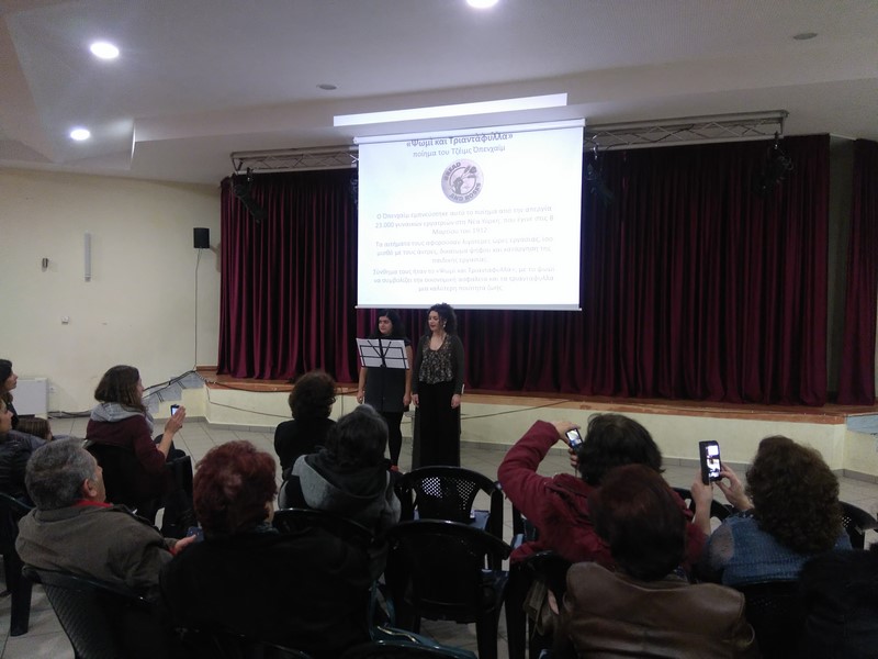 Στο τέλος της εκδήλωσης η πρόεδρος του συλλόγου Δέσποινα Στυλιανίδου, διάβασε κείμενο που είχε στείλει η κ. Μαρία Λαμπαδαρίδου – Πόθου.