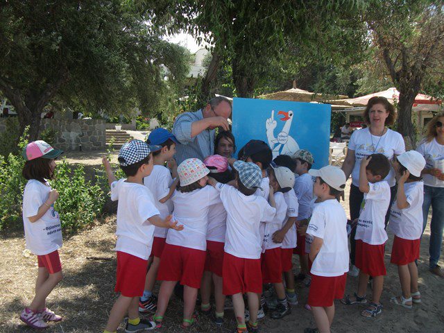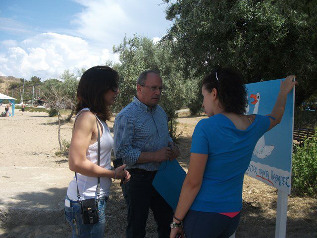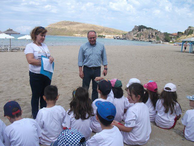 Τα παιδιά τοποθέτησαν μια πινακίδα με οικολογικό μήνυμα στην παραλία ενώ λίγο αργότερα δέχτηκαν και επίσκεψη από τον Δήμαρχο Λήμνου Αντώνη Χατζηδιαμαντή.