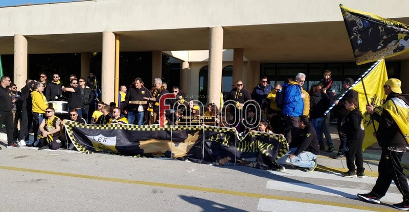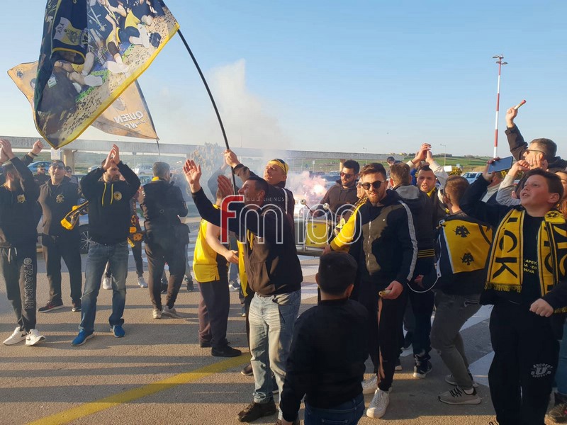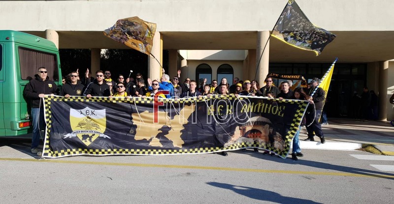 Το απόγευμα της Παρασκευής η Ένωση Φίλων ΑΕΚ Λήμνου υποδέχθηκε με συνθήματα και ενθουσιασμό στο αεροδρόμιο του νησιού τον Λούκα Μπάνκι και τους παίκτες του λίγες ώρες πριν από το αυριανό ματς στο «Νίκος Σαμαράς», το οποίο αναμένεται να είναι κατάμεστο.