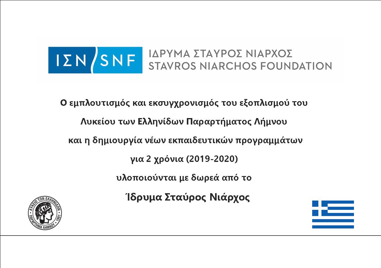 Ευχαριστούμε θερμά το Ίδρυμα Σταύρος Νιάρχος για την πολύτιμη αυτή προσφορά.
