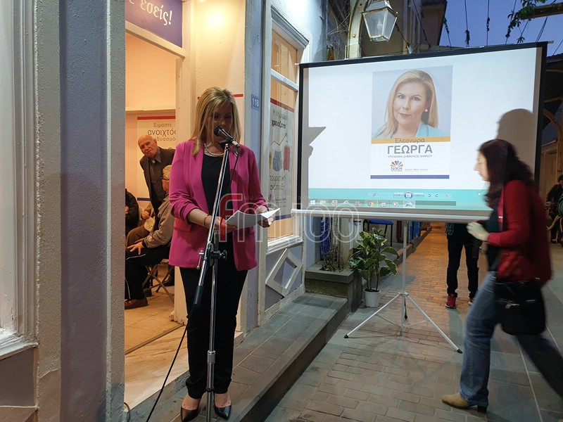 Η κα Γεώργα κατά την ομιλία της παρουσίασε τους βασικούς άξονες του προγράμματος της καθώς και τους υποψήφιους δημοτικούς συμβούλους του συνδυασμού της.