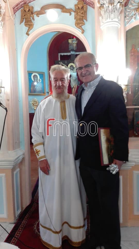 Ο εφημέριος του ναού π. Ηλίας Λασπατζακης με πολλή αγάπη, δώρισε στον υφυπουργό μια εικόνα της Αγίας Παρασκευής προκειμένου να την κρεμάσει στο γραφείο του για να τον προστατεύει και να τον βοηθά στο δύσκολο έργο που έχει μπροστά του.