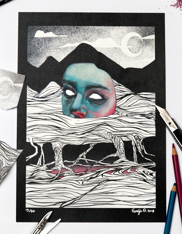 Γιαννέζη, Mountain will fall”, 42x50.5 cm, Μικτή τεχνική