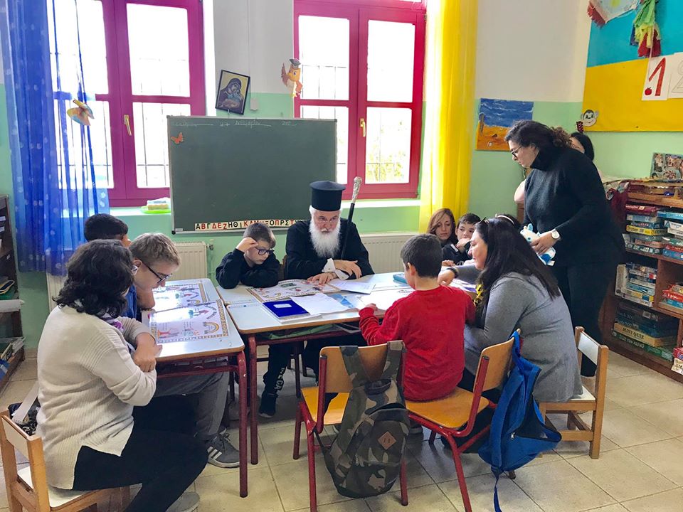 Στο Ειδικό Σχολείο, ο Σεβασμιότατος γνώρισε τους εκπαιδευτικούς και ενημερώθηκε για τα προβλήματα των ΑμεΑ, και πέρασε χρόνο με τους μαθητές μιλώντας και συμβουλεύοντάς τους.