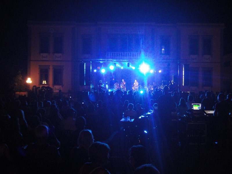 Εκείνο το βράδυ -το δεύτερο- το προαύλιο του Γυμνασίου, μετατράπηκε σ ένα παρεΐστικο χώρο. Οι ώρες κύλησαν σε χαλαρούς ρυθμούς (αρχικά, γιατί αργότερα οι ρυθμοί ανέβηκαν και οι μουσικές έπαυσαν το πρωϊ). Είχες τη δυνατότητα να ξεναγηθείς με μεγαλύτερη άνεση, στα περίπτερα, στο art bazaar, στην έκθεση φωτογραφίας. Πολλοί, επέλεξαν απλώς, να καθήσουν στις περιμετρικές κερκίδες του προαύλιου, απολαμβάνοντας το χαμηλό φωτισμό της σκηνής, το δροσερό καλοκαιρινό μελτέμι που αποφάσισε να οργιάσει λίγο περισσότερο εκείνο το βράδυ, κοιτάζοντας τις "φωτογραφίες των παιδικών μας χρόνων" που κυλούσαν στο πανί, πάνω από τη σκηνή και που ξύπνησαν μνήμες σε πολλούς από μας, από το Γυμνάσιο των παιδικών μας χρόνων.