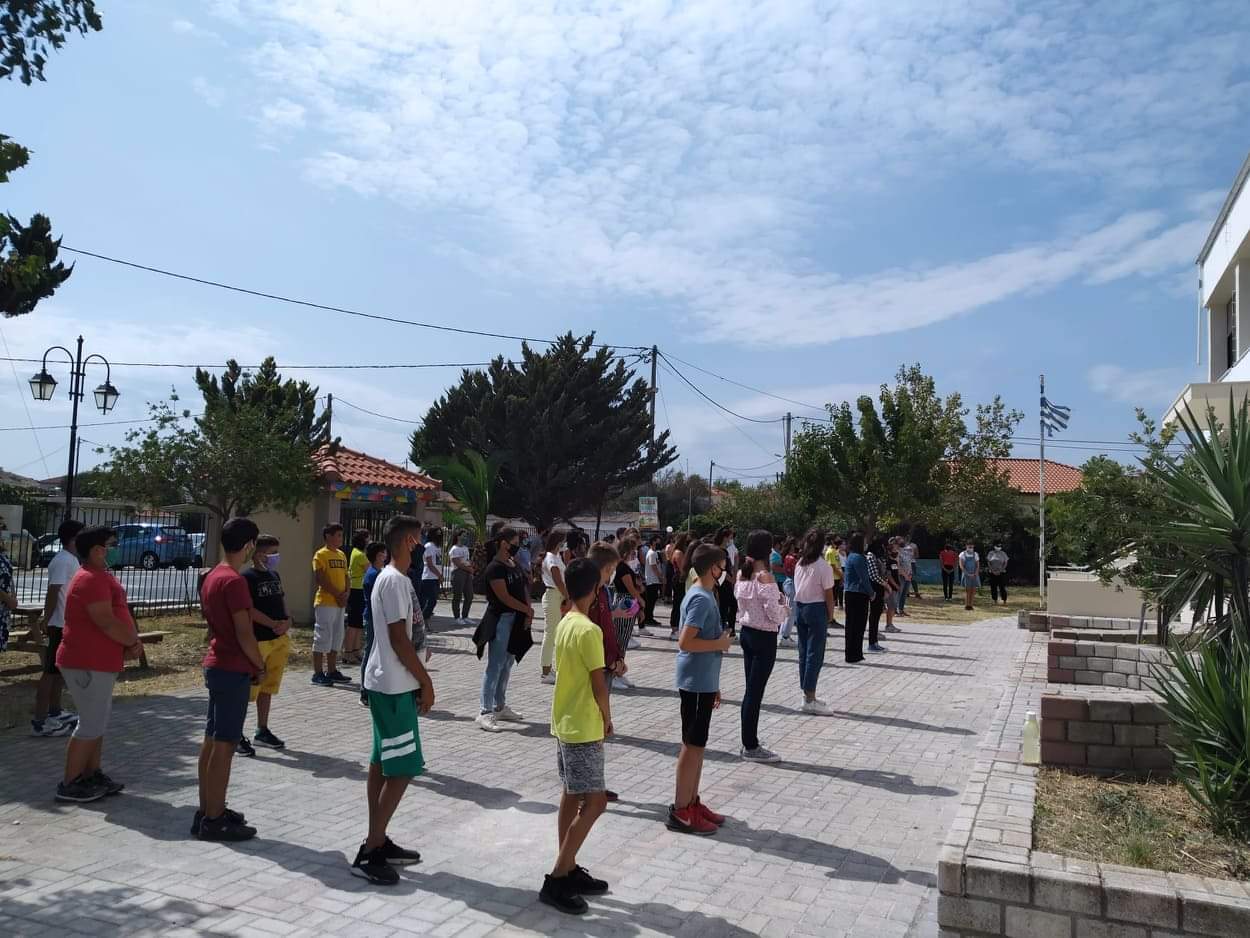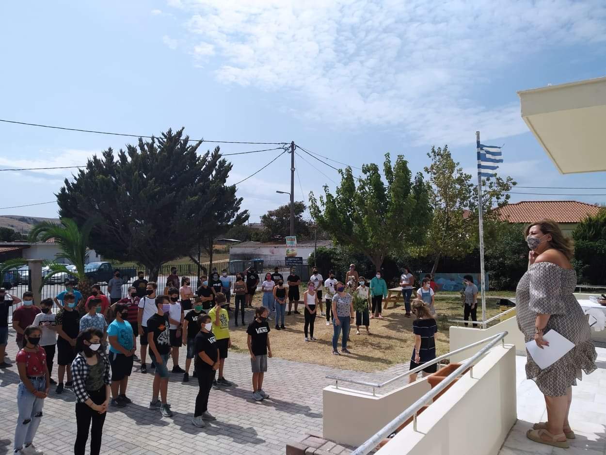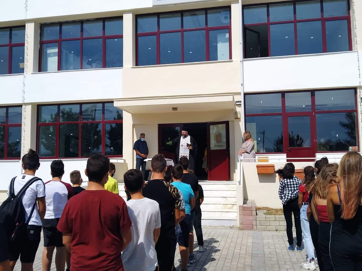 «Ένας διαφορετικός αγιασμός σήμερα για τους μαθητές του Γυμνασίου Μούδρου. Αποστάσεις, μάσκες, αλλά και απουσία γονέων χαρακτήρισαν τη σημερινή πρώτη μέρα, που παρά τις δυσκολίες της, που ήταν πολλές, είχε και τη γλυκιά γεύση της πρώτης γνωριμίας με τους μαθητές της Α’ τάξης και του ξανανταμώματος με τους μαθητές των μεγαλύτερων τάξεων. Σε ένα ανακαινισμένο σχολείο, για τη λειτουργία του οποίου ο Δήμος κατέλαβε σκληρές προσπάθειες, ώστε να προλάβουμε το στοίχημα μας με το χρόνο. Κοντά μας, όπως πάντα, ο ιερέας του Μούδρου, πατέρας Σεραφείμ, και ο αντιδήμαρχος, κ. Μπούμπουρας. Δεχθήκαμε τις ηλεκτρονικές ευχές τη Υπουργού Παιδείας, κ. Κεραμέως, της Διευθύντριας Περιφερειακής Εκπαίδευσης, κ. Παπαδανιήλ και του Διευθυντή Β/μιας Εκπαίδευσης Λέσβου, κ. Θεοφανέλλη, όλες στο πνεύμα "Μαθαίνουμε ασφαλείς". Οι μαθητές μας, σωστά καθοδηγημένοι από τους γονείς τους τήρησαν πιστά τις οδηγίες, παρέλαβαν τα βιβλία τους καθώς και τις μάσκες που στάλθηκαν από την πολιτεία και παρακολούθησαν πρόγραμμα 5 ωρών. Ευχόμαστε ολόψυχα καλή και ασφαλή χρονιά!».