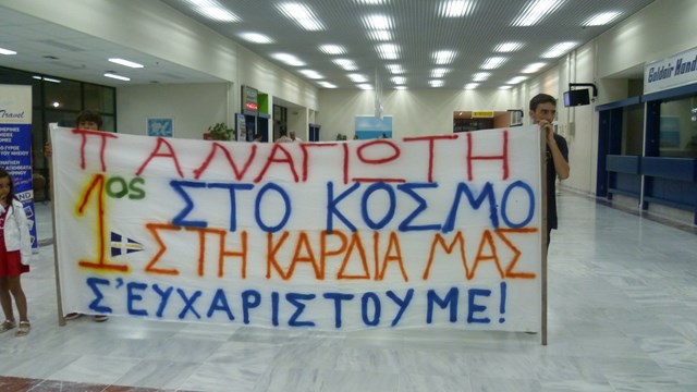 Πανό, λουλούδια, χαμόγελα, αγαπημένα πρόσωπα του Παγκόσμιου Πρωταθλητή, ήταν εκεί, για ένα ζεστό καλωσόρισμα στον αθλητή που μας έκανε υπερήφανους και πάλι.