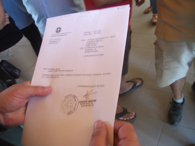 Η μεταφορική εταιρεία, αποχώρησε για να επιστρέψει λίγη ώρα αργότερα, μετά την επιμονή του προϊσταμένου Μυτιλήνης κ. Παναγιώτη Μπαρούτη, να πραγματοποιηθεί οπωσδήποτε η μεταφορά του αρχείου, έστω συνοδεία αστυνομίας. Μάλιστα ο κ. Μπαρούτης απείλησε, με παρέμβαση εισαγγελέα για παρακώλυση μεταφοράς δημόσιου υλικού.