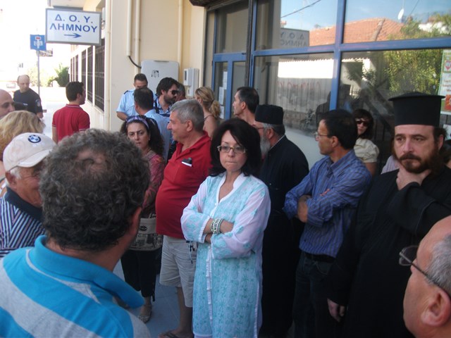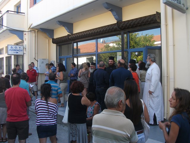 Η είδηση μεταφέρθηκε ακαριαία, με αποτέλεσμα να καταφθάσουν στην πρώην εφορία Λήμνου, (ας μην διαλανθάνει της προσοχής μας, ότι αυτή τη στιγμή δεν υφίσταται εφορία στη Λήμνο και ότι δεν εκτελείται καμία οικονομική συναλλαγή των κατοίκων του νησιού με το κράτος), εκπρόσωποι φορέων και πλήθος κόσμου, οι οποίοι εμπόδισαν τη μεταφορά.