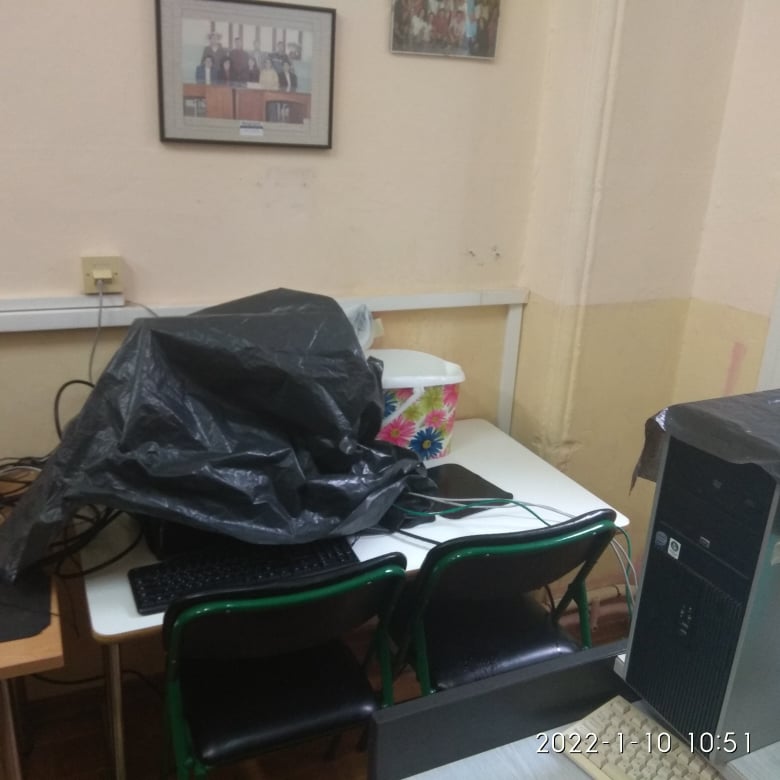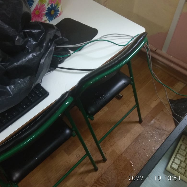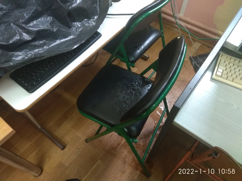 Το μόνο που έχει γίνει, είναι ότι ήρθαν τον Σεπτέμβριο 1 μέρα πριν τον Αγιασμό κι έβαψαν μόνο το κομμάτι το οποίο είχε σαπίσει από το νερό, κάτι που φυσικά δεν είχε αποτέλεσμα. Κίνδυνος για ηλεκτροπληξία, για βραχυκύκλωμα, για καταστροφή των μηχανημάτων που με τη χρηματοδότηση των σχολείων θα είναι από δύσκολο ως αδύνατο να αντικατασταθούν.