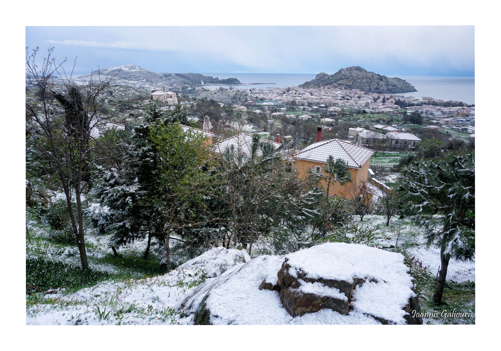 Ο χορός των χιονονιφάδων που έπεφταν κατά τη διάρκεια της νύχτα ήταν μαγευτικός κι έτσι η Λήμνος σήμερα από άκρη σε άκρη είναι ντυμένη στα λευκά και ο φωτογραφικός φακός απαθανατίζει την κάθε στιγμή.