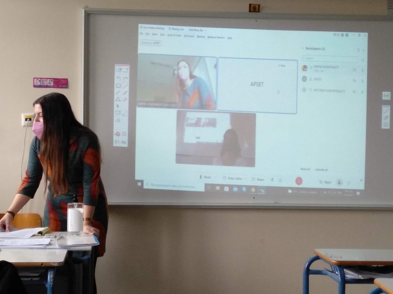 Στο πλαίσιο συνεργασίας eTwinning ‘Virtual museum of our country’s contemporary art’ , η καθηγήτρια Αγγλικών του Γενικού Λυκείου Μούδρου, κ. Μαρία Μακαρίδου σε συνεργασία με την καθηγήτρια Αγγλικών του ΕΠΑΛ Μύρινας, κ. Αντωνία Βαχαρακίδου (https://www.facebook.com/epalmyrinas) προσκάλεσαν την Παρασκευή, 4 Μαρτίου 2022 σε μια εναλλακτική διαδικτυακή συνέντευξη στο σχολείο τον διάσημο ζωγράφο-street artist Apset . Στη συνάντηση συμμετείχαν μαθητές και μαθήτριες και των δύο σχολείων.