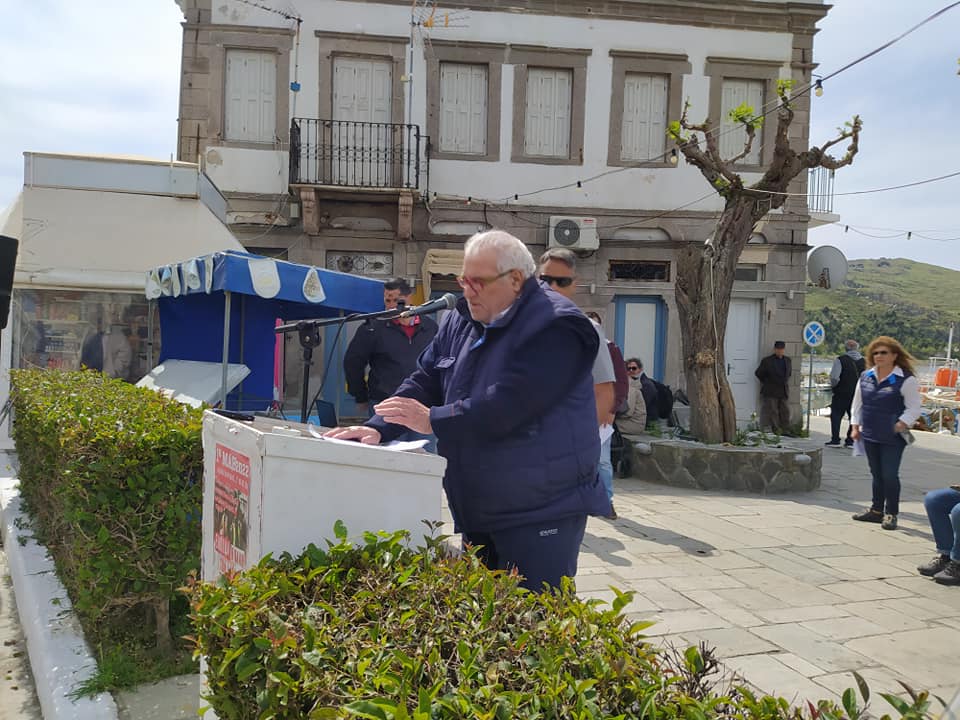 Την κεντρική ομιλία έκανε ο Απόστολος Αγαλιανός, μέλος του ΔΣ του Σωματείου Οικοδόμων Λήμνου, όπου, μεταξύ άλλων, εξέφρασε και την αλληλεγγύη των σωματείων του νησιού στους απεργούς λιμενεργάτες της COSCO, που, κόντρα στην εργοδοτική και κυβερνητική τρομοκρατία και αδιαλλαξία, συνεχίζουν τις αγωνιστικές κινητοποιήσεις για την υπογραφή Συλλογικής Σύμβασης Εργασίας με αυξήσεις, τη εφαρμογή των προσαυξήσεων για νυχτερινή εργασία και αργίες, την εφαρμογή των Βαρέων και Ανθυγιεινών Επαγγελμάτων επιτέλους στο λιμάνι, καθώς και τη προστασία της Υγείας και της Ασφάλειας των ζωών τους.