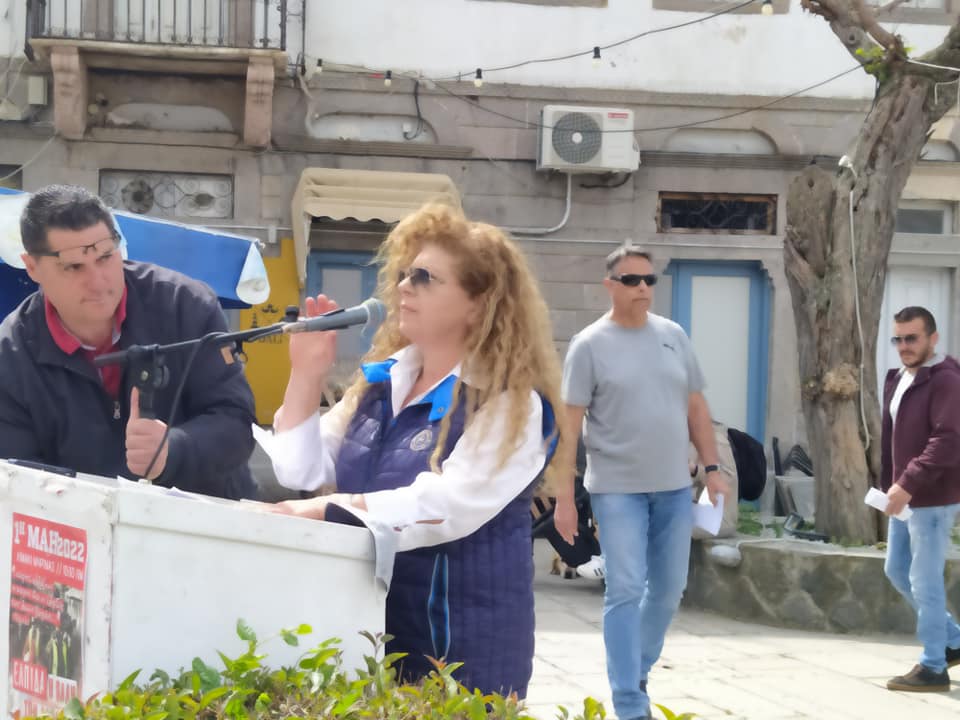 Η Δέσποινα Καμπουροπούλου, γραμματέας του Σωματείου Ξενοδοχοϋπαλλήλων Λήμνου, απήγγειλε το ποίημα του Γιάννη Ρίτσου, «ειρήνη».