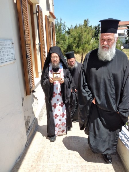 Ὁ Σεβασμιώτατος κατὰ τὴν ὑποδοχὴ τοῦ ἁγίου λειψάνου, στὴ σύντομη προσλαλιά του, βαθύτατα συγκινημένος, εὐχαρίστησε στὸ πρόσωπο τῶν παρόντων, τὸν Σεβαστὸ Καθηγούμενο καὶ τὴν περὶ Αὐτὸν Μοναστικὴ Ἀδελφότητα, γιὰ τὴν μεγάλη εὐλογία ποὺ ἐπιφύλαξαν στὴν Ἱερὰ Μητρόπολή μας, στὸν πιστὸ καὶ φιλάγιο λαὸ τοῦ νησιοῦ μας καὶ ἰδιαιτέρως στοὺς ἀπογόνους τῶν πονεμένων προσφύγων συμπατριωτῶν τοῦ Ὁσίου, οἱ ὁποῖοι βρῆκαν καταφυγὴ καὶ φιλοξενία στὴν κωμόπολη τοῦ Ἁγίου Δημητρίου, ὡς θύματα τῆς Μικρασιατικῆς τραγωδίας.