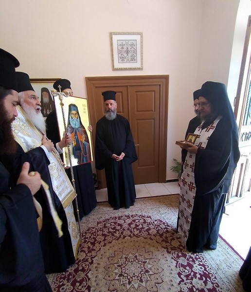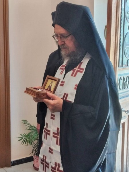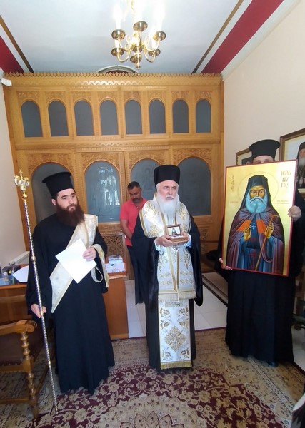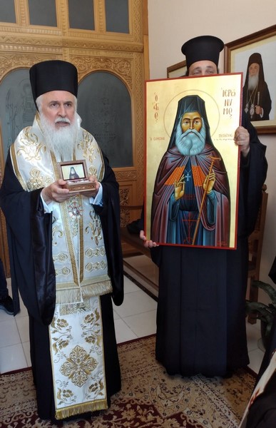 Ὁ Σεβ. Μητροπολίτης μας κ. Ἱερόθεος, μὲ τὴν προσήκουσα τιμὴ καὶ τὴν προβλεπόμενη ἐκκλησιαστικὴ τάξη, ὑποδέχθηκε μαζὶ μὲ τοὺς Κληρικοὺς καὶ λαϊκοὺς συνεργάτες του, Τετάρτη 1η Ἰουνίου 2022, στὸ Ἐπισκοπεῖο τῆς Ἱερᾶς Μητροπόλεως, ἀπότμημα ἐκ τοῦ ἱεροῦ καὶ χαριτοβρύτου λειψάνου τοῦ νεοφανέντος Ὁσίου Ἱερωνύμου τοῦ Σιμωνοπετρίτου, προσφάτως ἁγιοκαταταχθέντος στὸ ἁγιολόγιο τῆς Ἐκκλησίας μας ἀπὸ τὸ Σεπτὸ Οἰκουμενικὸ Πατριαρχεῖο.