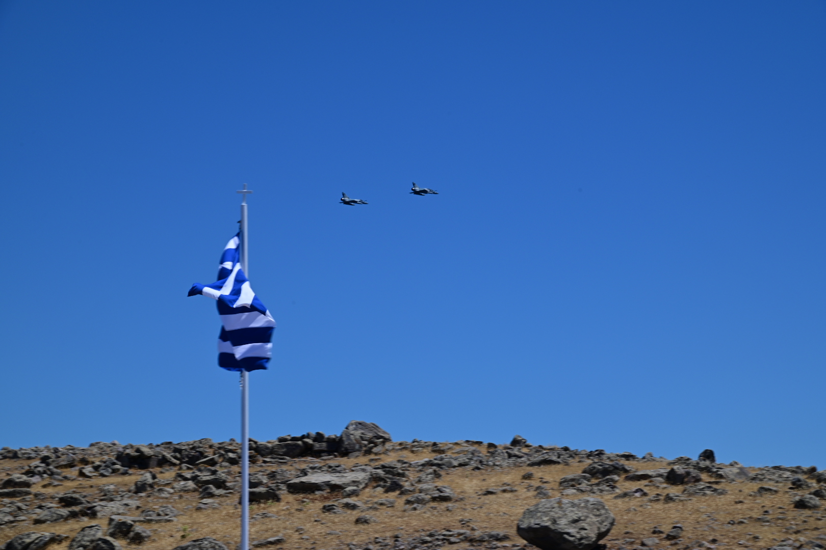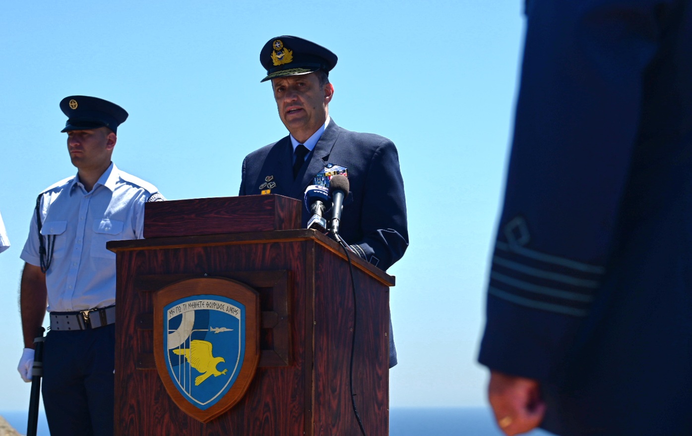 Κλίνω ευλαβικά το γόνυ στον αθάνατο πιλότο μας, που με το αίμα του καθαγίασε την αδιαμφισβήτητη ελληνική κυριαρχία στους αιθέρες του Αιγαίου. Στη σεβαστή οικογένεια του πεσόντα, καθώς και στη μεγάλη οικογένεια της Πολεμικής Αεροπορίας, θα απευθυνθώ παραφράζοντας τα λόγια του Θουκυδίδη, στον Επιτάφιο του Περικλή: Ευτυχισμένοι μπορεί να θεωρούνται μόνο εκείνοι στους οποίους έτυχε η μέγιστη τιμή, δηλαδή είτε ένας έντιμος θάνατος, όπως αυτός των πεσόντων υπέρ της ελευθερίας της πατρίδας, είτε μια έντιμη λύπη, όπως αυτή των συγγενών τους. Να είστε υπερήφανοι για τον ήρωα που τιμάμε σήμερα, γιατί πέταξε προς τον θάνατο αγέρωχα, ακολουθώντας το ίδιο μονοπάτι της τιμής και του καθήκοντος, που ακολούθησαν τόσοι και τόσοι Έλληνες πολεμιστές ανά τους αιώνες.