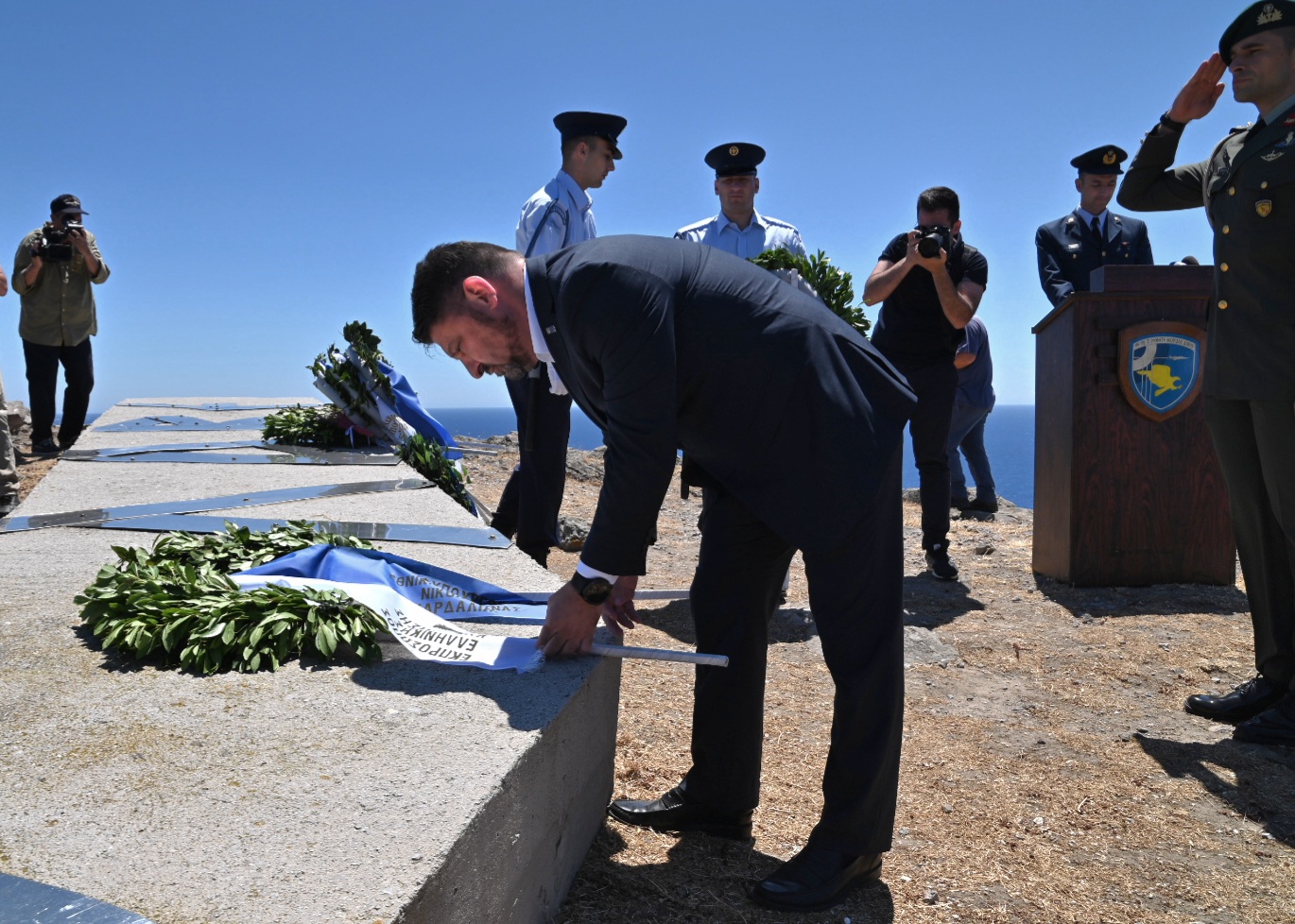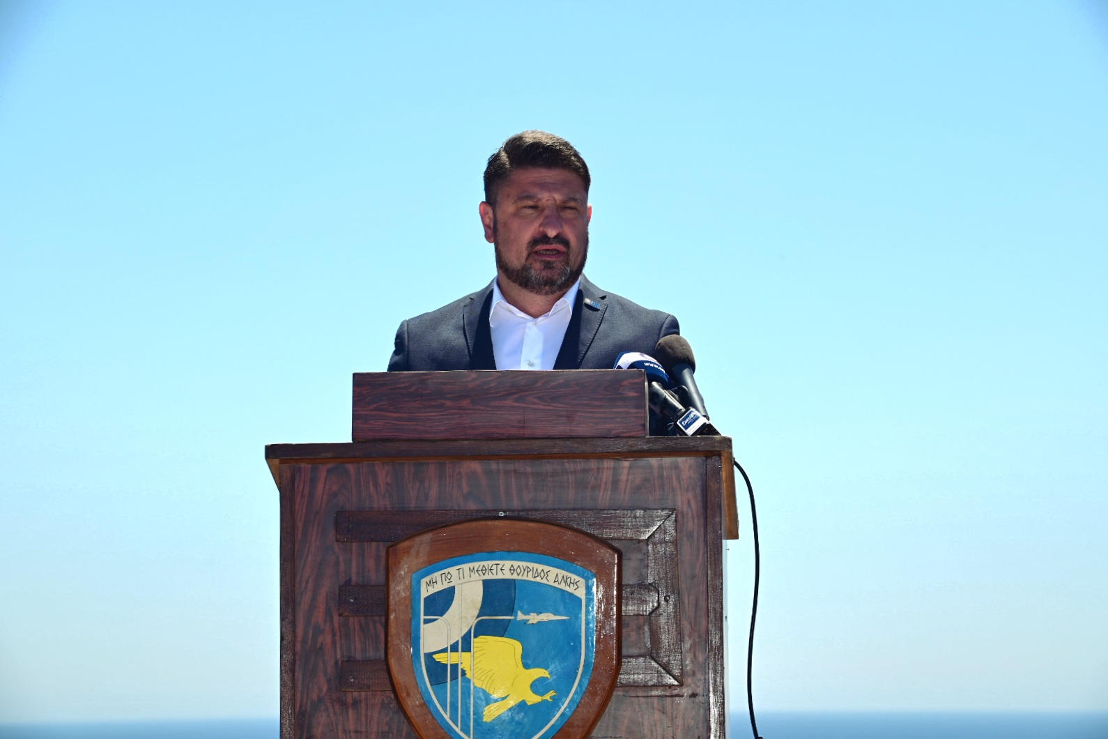 Ο Υφυπουργός Εθνικής Άμυνας, μετά την τέλεση της επιμνημόσυνης δέησης, κατέθεσε στεφάνι στο Μνημείο του Ήρωα, ενώ στον χαιρετισμό του ανέφερε τα εξής: