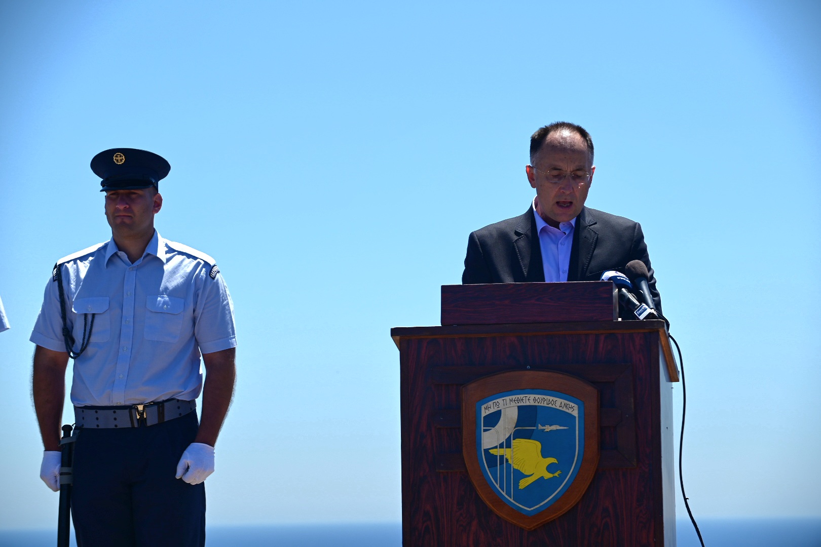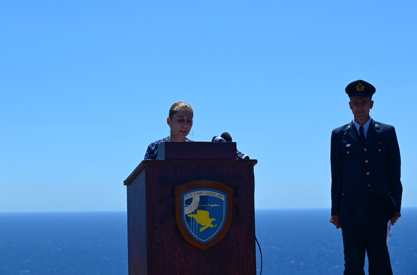 «Πόση πραγματικά συγκίνηση. Και αισθάνομαι περήφανος και συγκινημένος που παρίσταμαι σήμερα εδώ, στην καρδιά της νησιωτικής μας Ελλάδας, στο κέντρο του Αιγαίου μας, ως εκπρόσωπος της Ελληνικής Κυβέρνησης, για να μεταφέρω τον προσωπικό χαιρετισμό του Πρωθυπουργού προς ολόκληρη την οικογένεια της Πολεμικής Αεροπορίας, που τιμά σήμερα τη μνήμη του ήρωα αεροπόρου Νικολάου Σιαλμά.